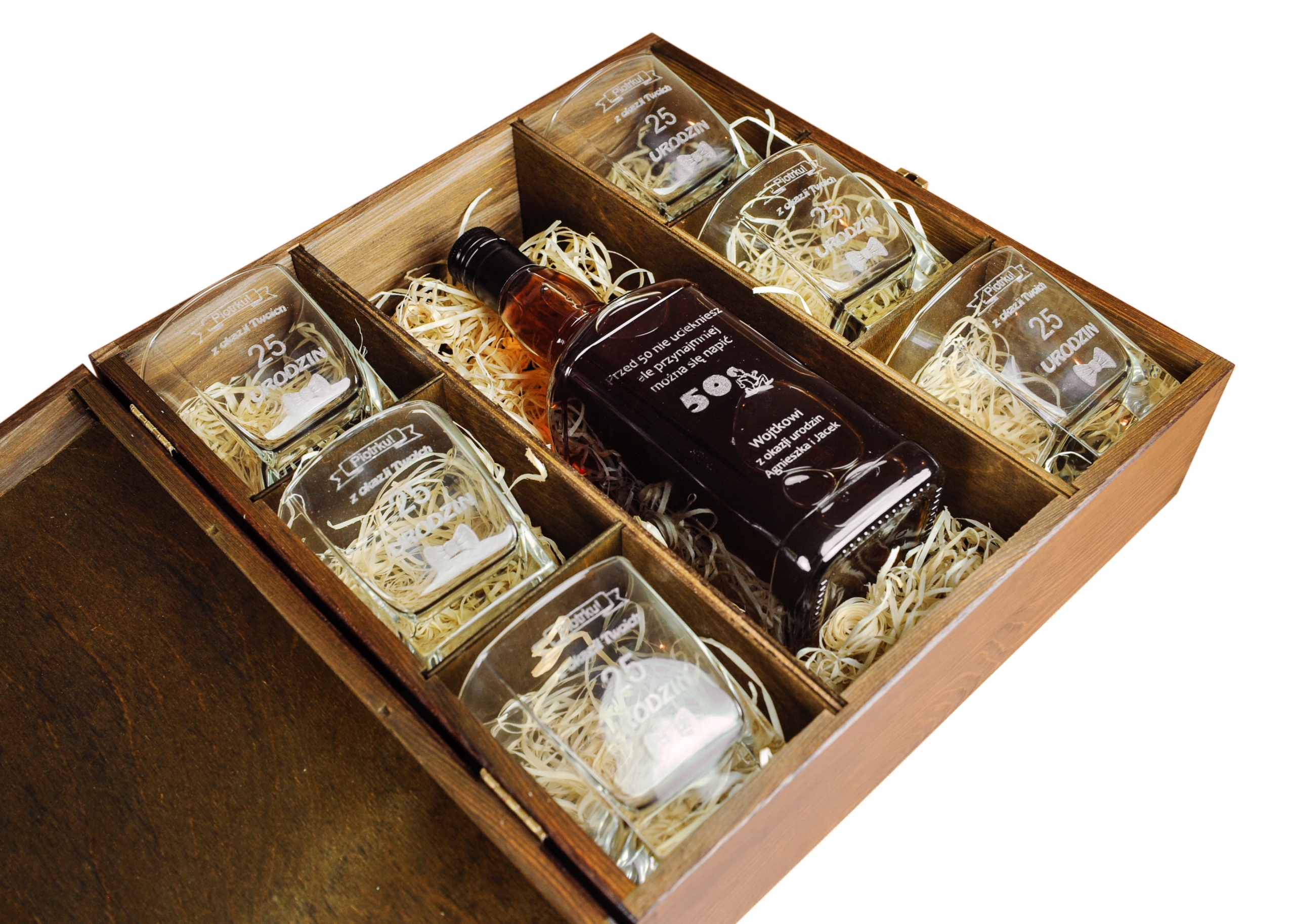 Коричневая деревянная шкатулка с бутылкой + 6 стаканов на день рождения BE15