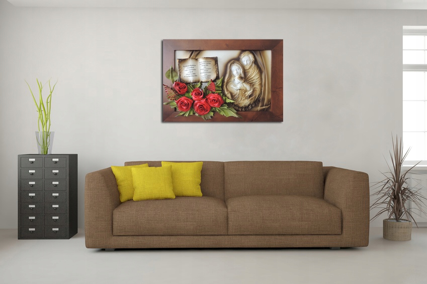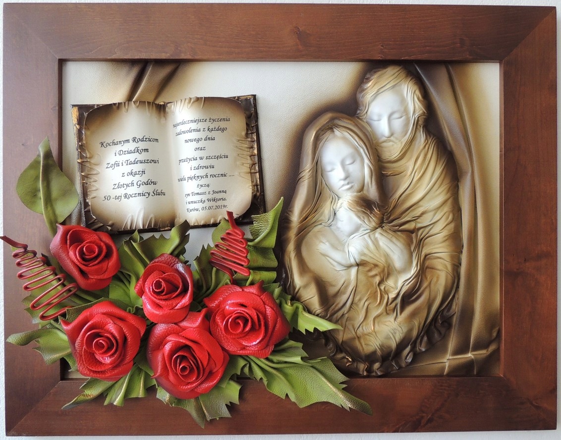 Предлагаю оригинальную картину из кожи "СВЯТОЕ СЕМЬЕ" + букет роз