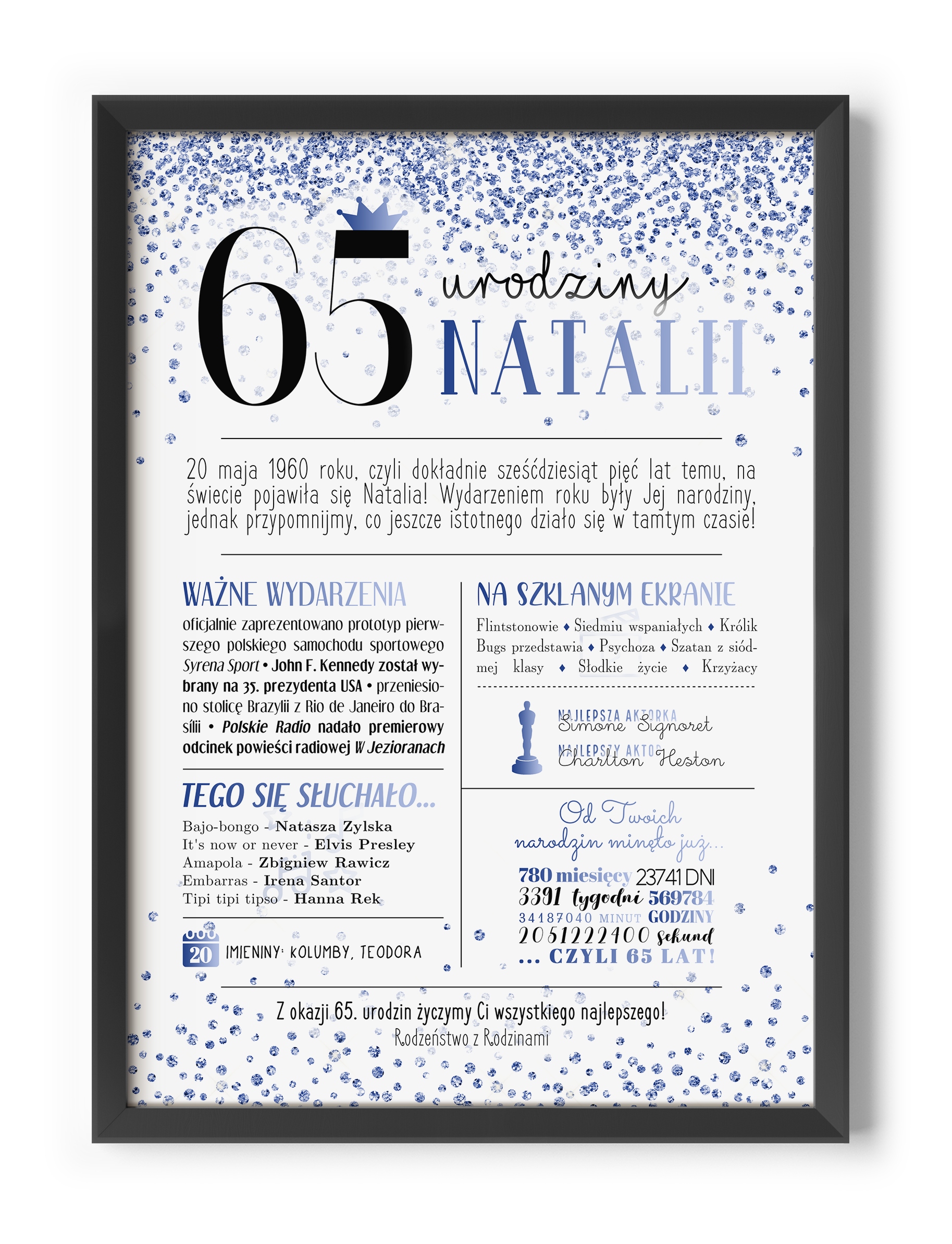 ПОДАРОК НА 65-ЛЕТИЕ РОЖДЕНИЯ оригинальный ПЕРСОНАЛИЗИРОВАННЫЙ ПЛАКАТ + рамка А4