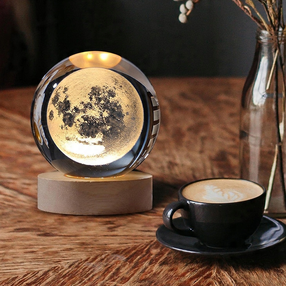 ПОДАРУНОК НА ДЕНЬ СВЯТОГО ВАЛЕНТИНА СВІТЛОДІОДНА ЛАМПА КРИШТАЛЕВА КУЛЯ 3D МІСЯЦЬ