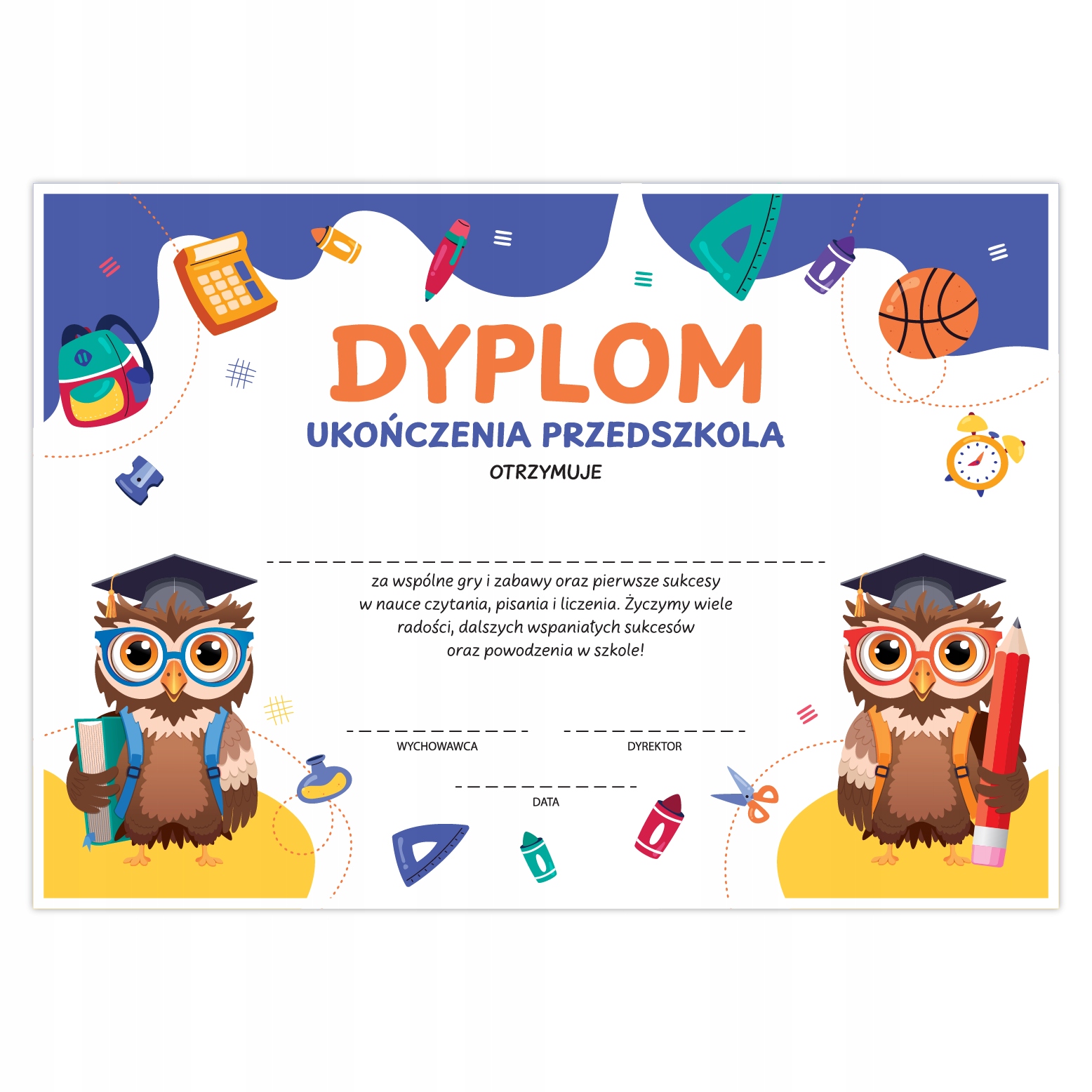 Подарок для диплома для детей, выпускных из детского сада - Sówki (A4) - Учитесь