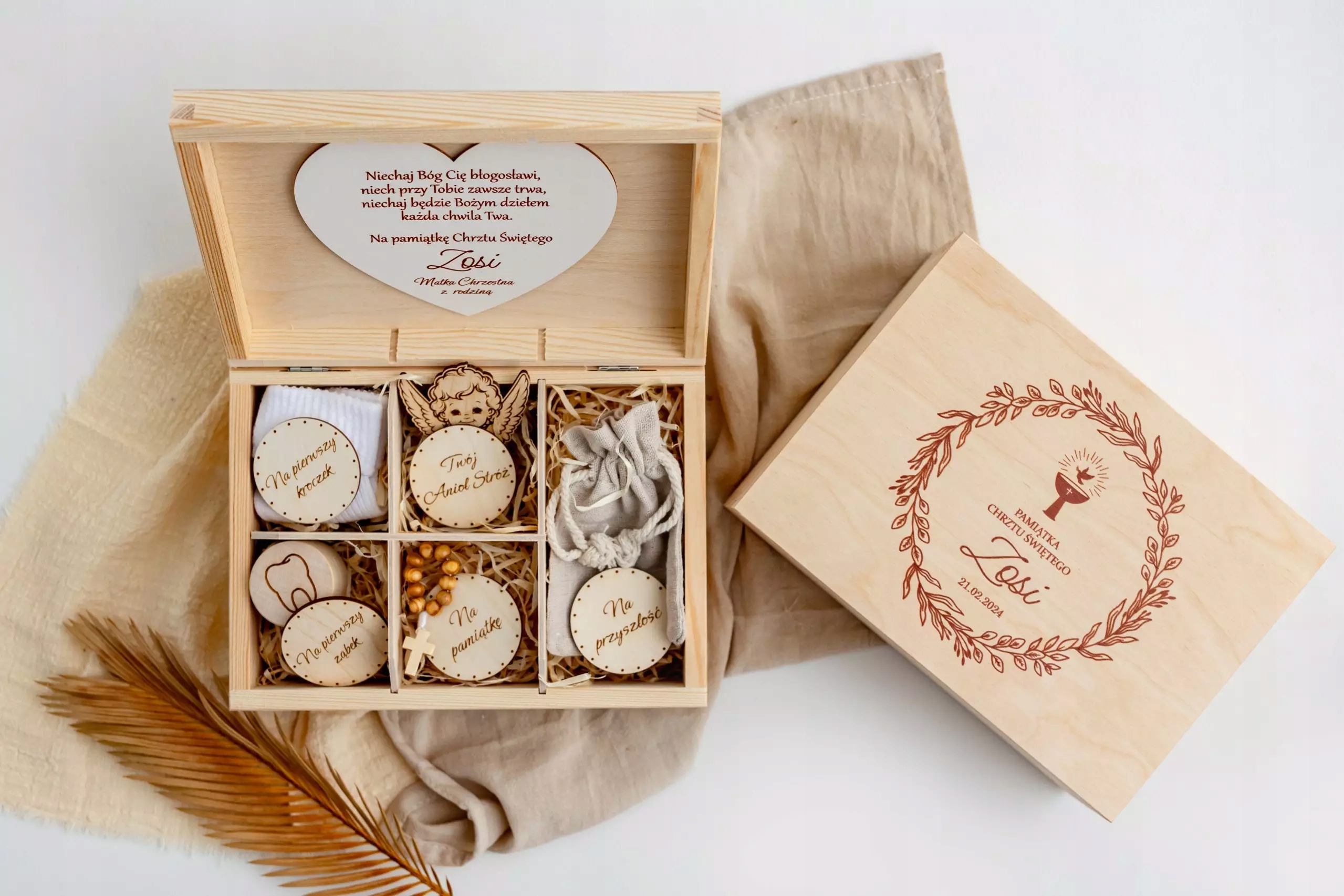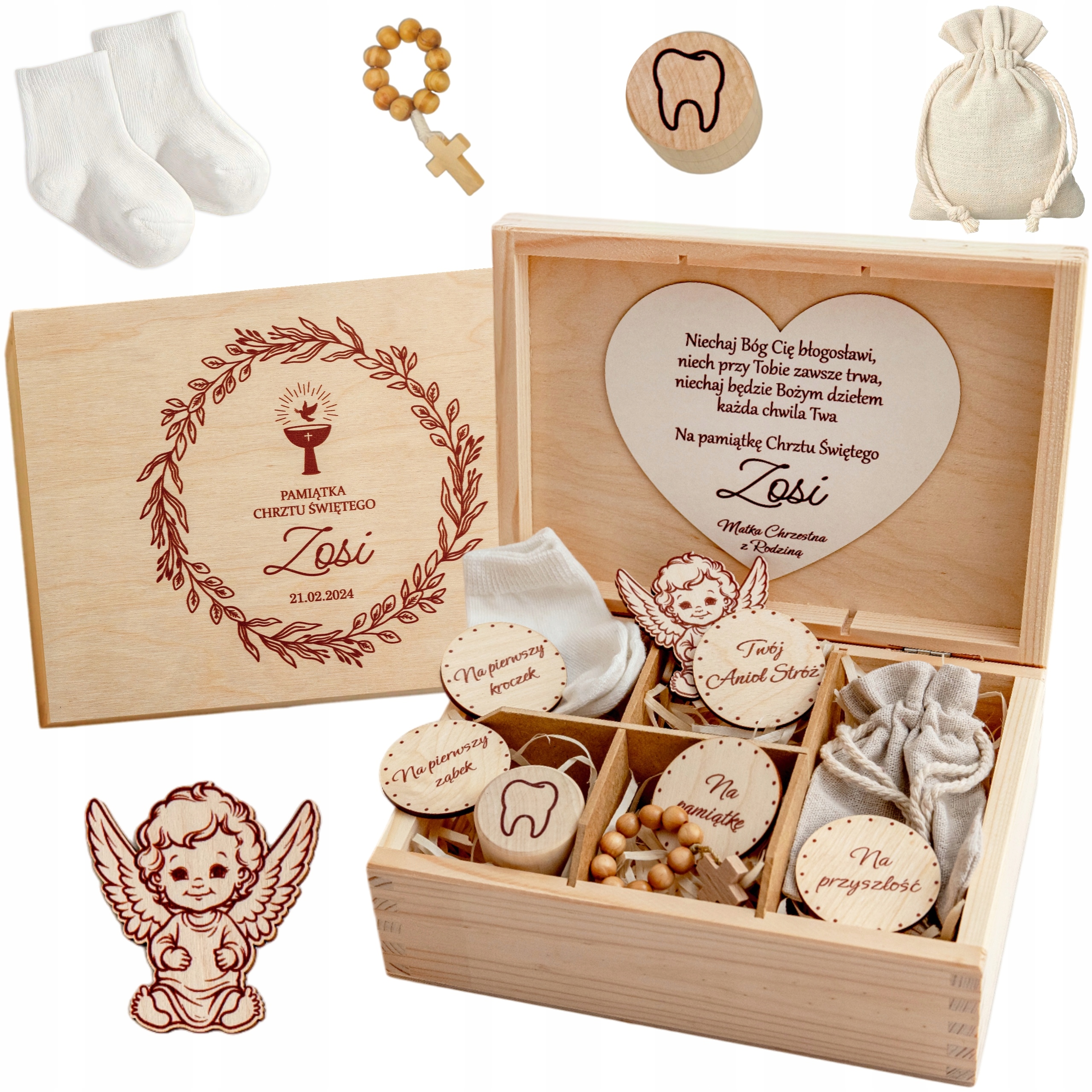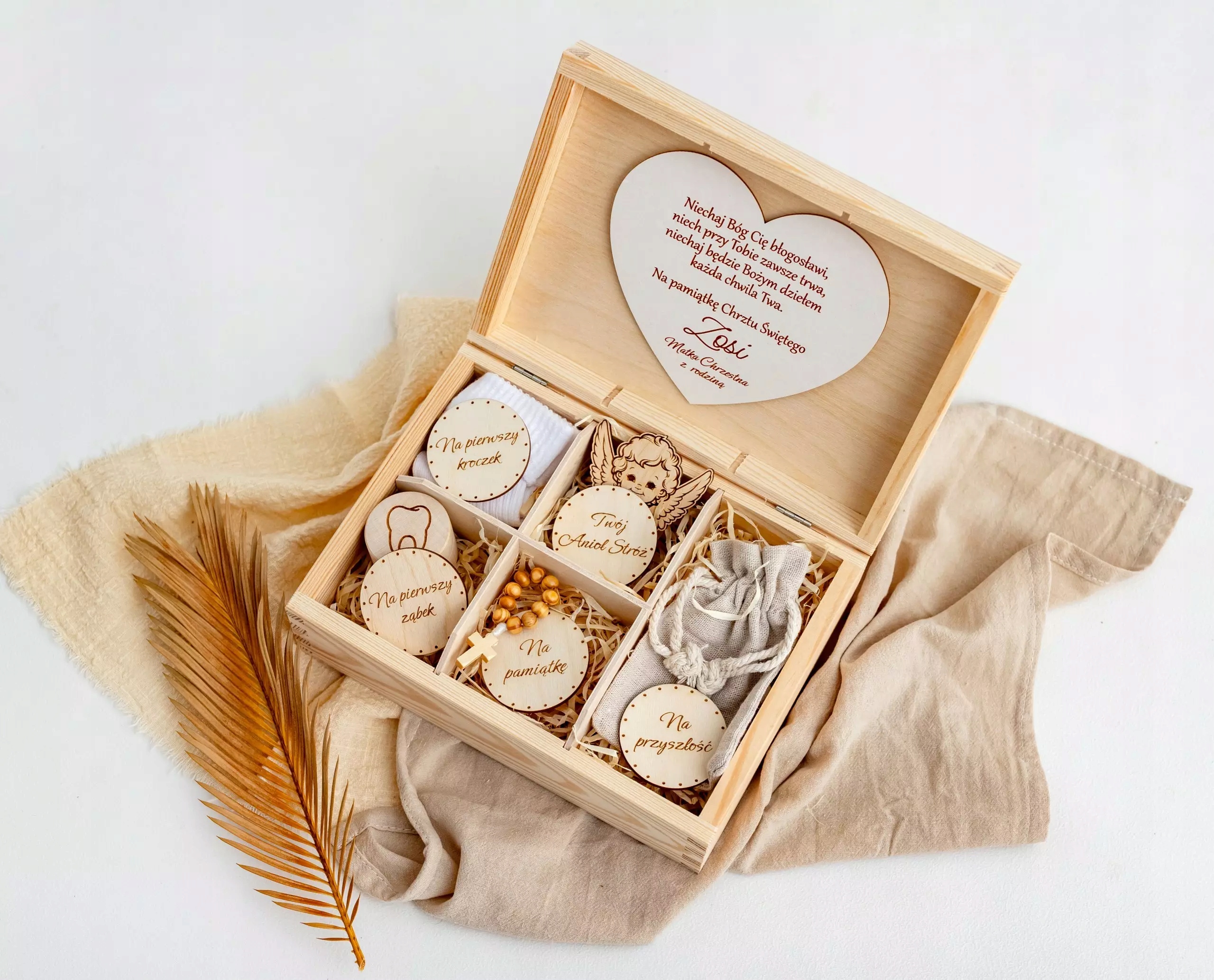 Подарунок на хрещення, сувенір на хрещення, дерев'яна скринька, речі першої необхідності