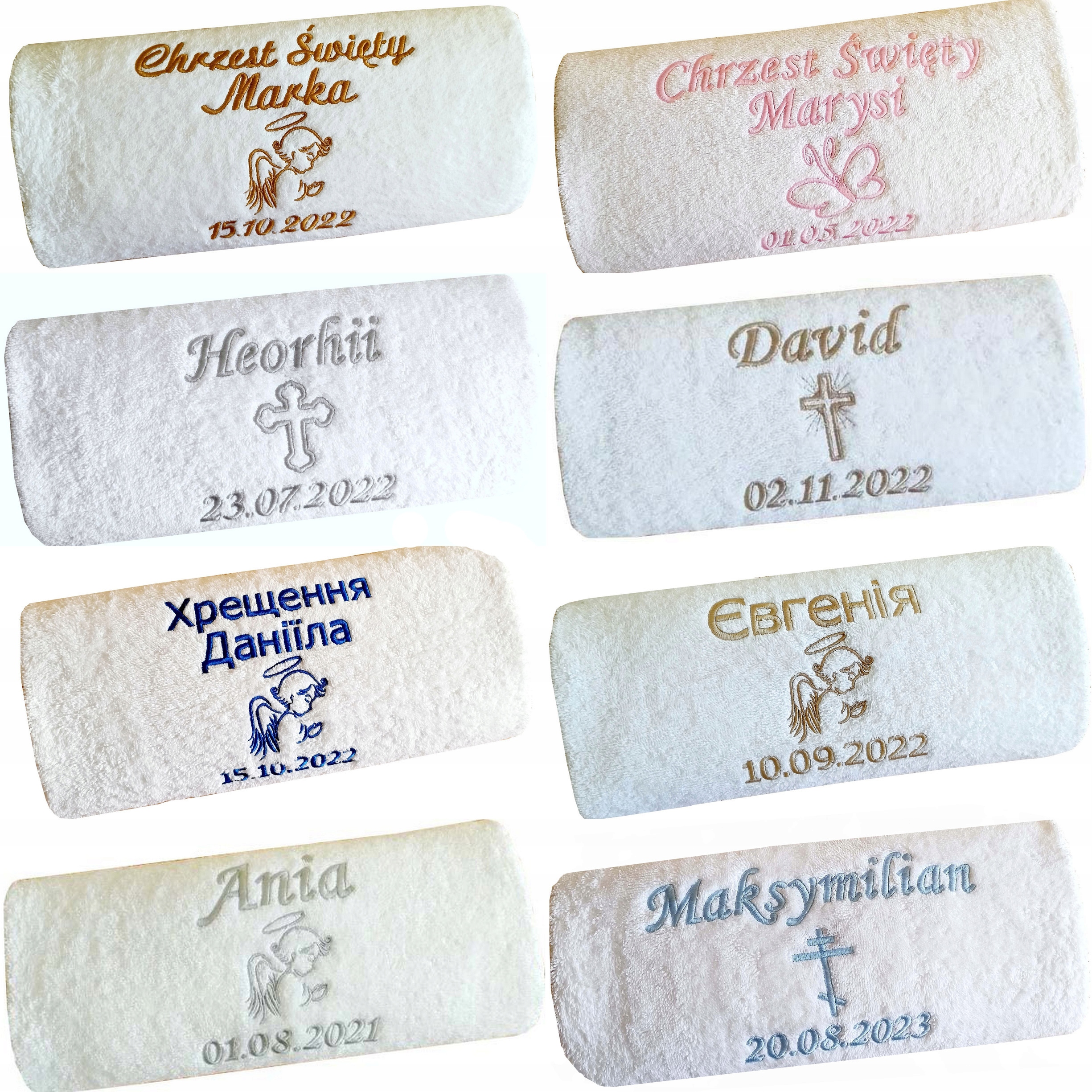 На других наших аукционах вы найдете и другие сувениры и подарки на Крещение - полотенца, подушки, крестильные сувениры в рамках, крестильные халаты и свечи, нагрудники - все с вашей собственной вышивкой (надписью и графикой).< /п>