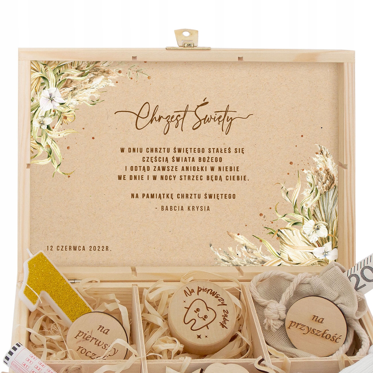 Коробка на внутренней части. На крышке имеются персонализированные пожелания. После покупки укажите имя и подпись ребенка. Возможно изменение содержания пожеланий.