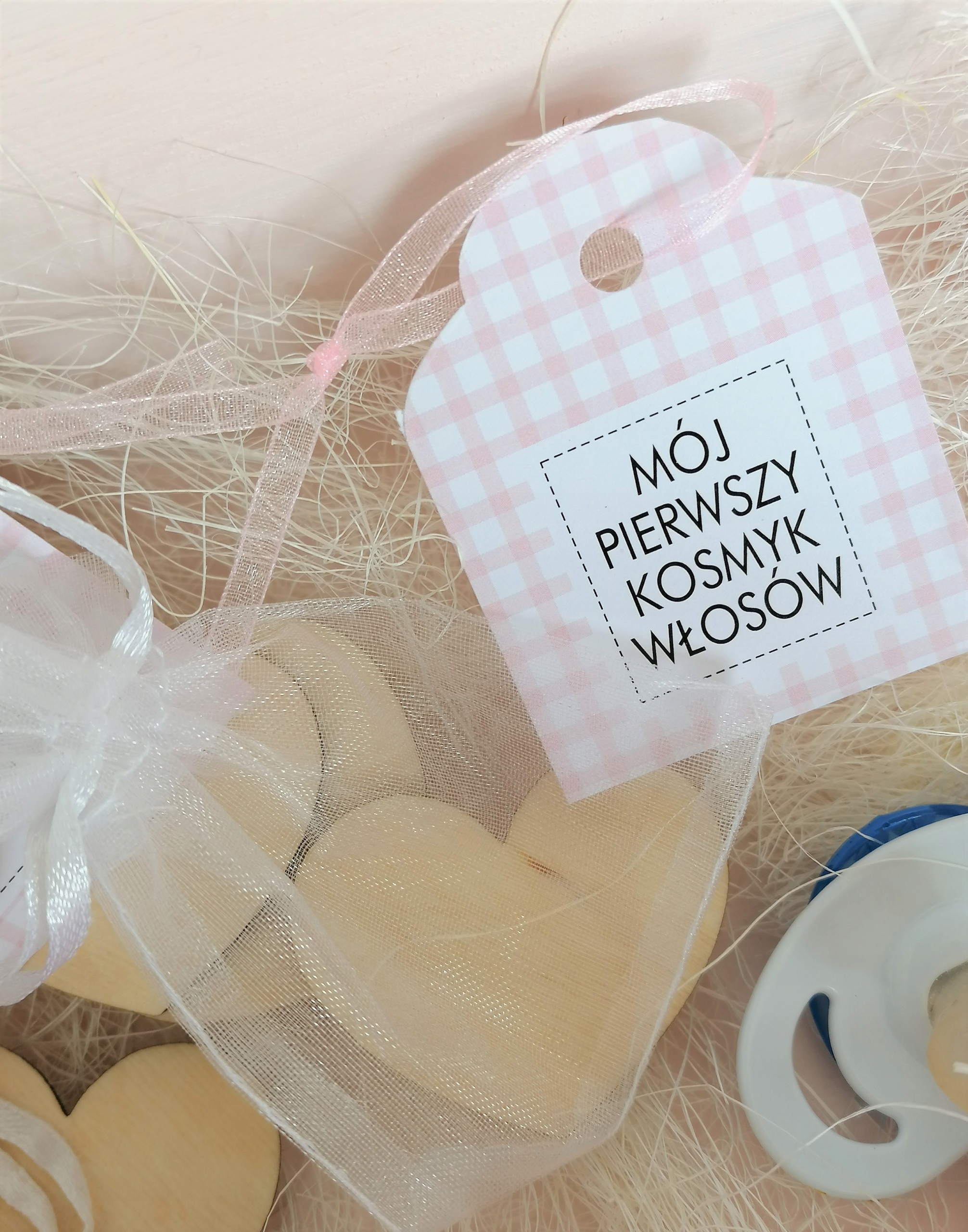 Кроме того, внутри лежат 2 белых тюлевых мешочка для первого зуба и первой пряди волос.