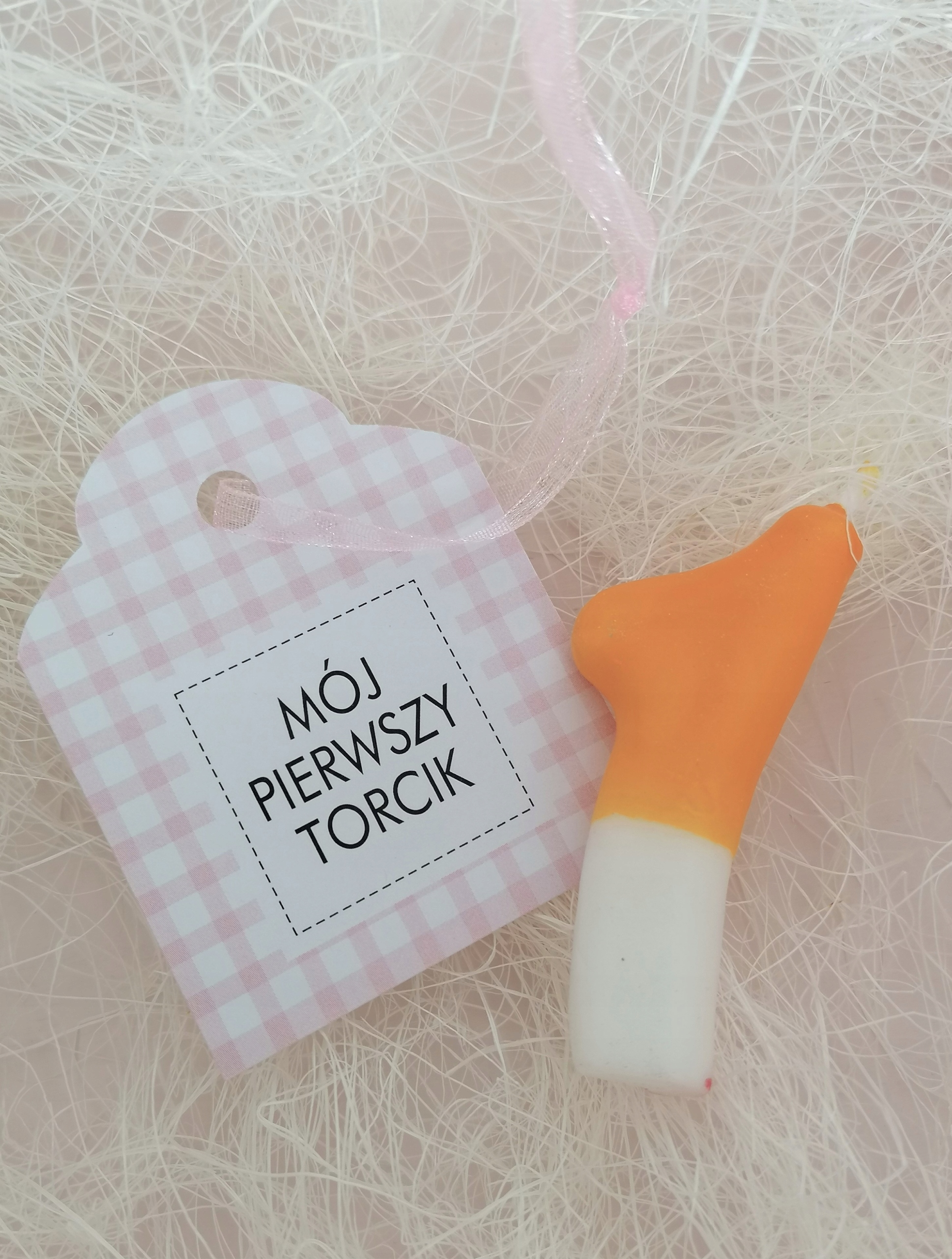 Центр коробки также окрашен в пудрово-розовый цвет и содержит белое сено и декоративные карточки с надписями: