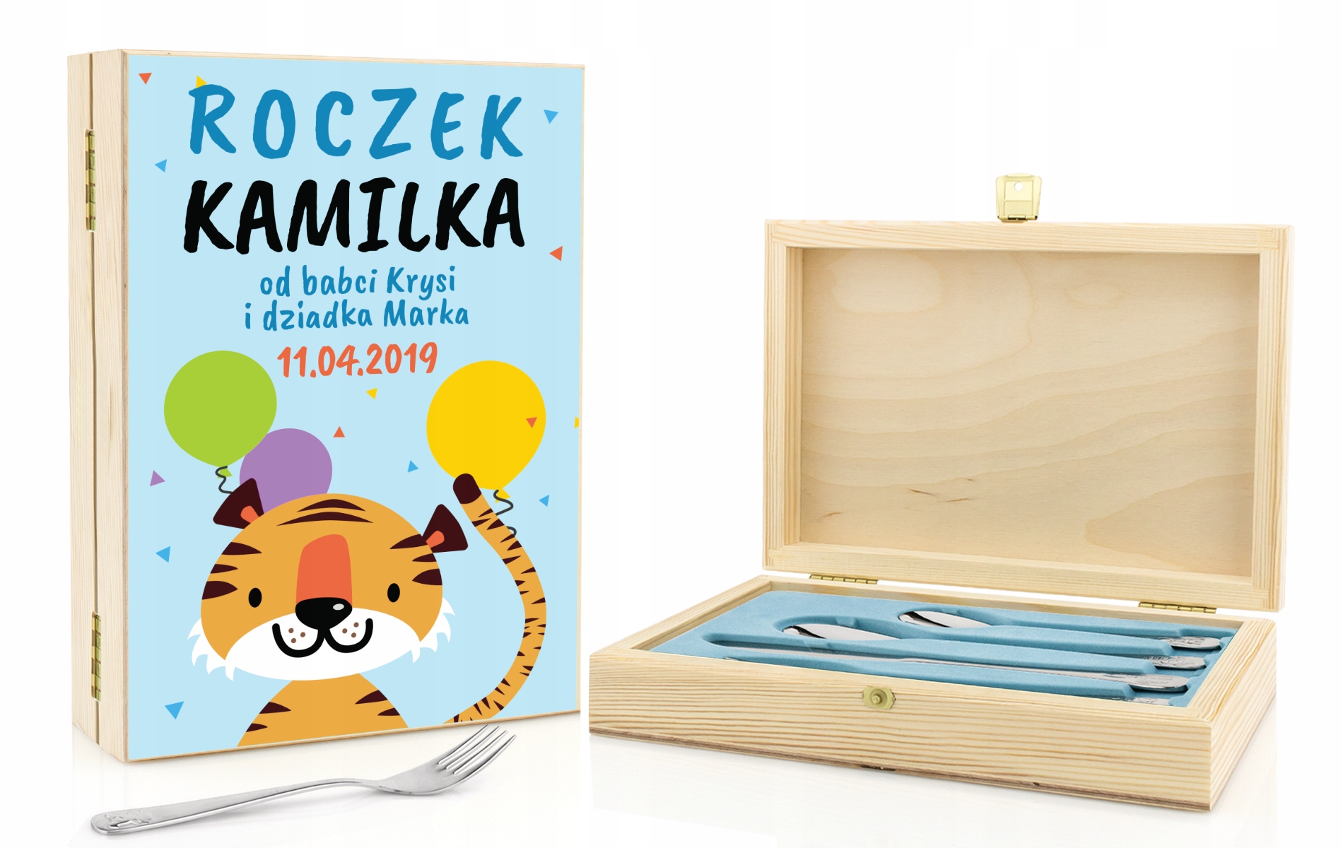 Ищете уникальный подарок своему крестнику или крестнице по случаю Святого Крещения или дня рождения, который прослужит ему долгие годы? В таком случае мы можем предложить вам уникальный набор столовых приборов, упакованный в деревянную коробку, а также сделаем на коробке персонализированную красочную печать. На каждом столовом приборе будет индивидуальная гравировка.