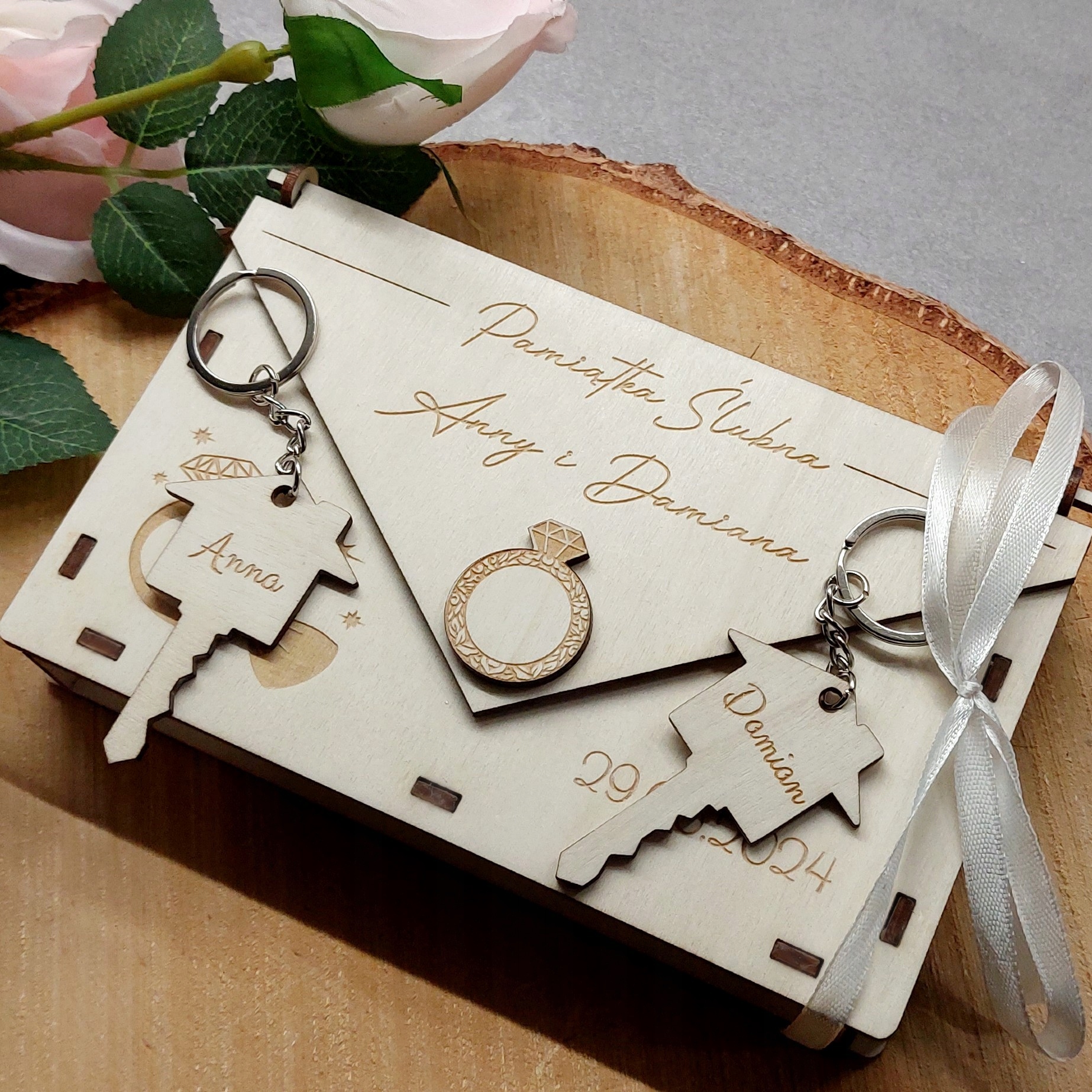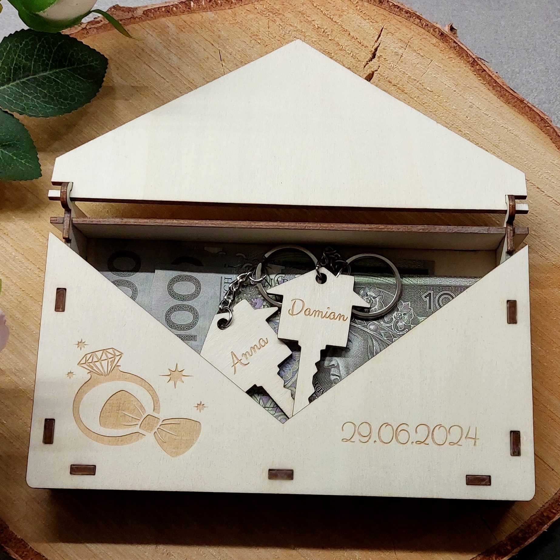 деревянный конверт - Денежный ящик - свадебный сувенир с персонализацией пожеланий + 2 ключевых кольца с именами! h1> - идеальный сувенир и свадебный подарок для жениха и невесты! Удивите своих друзей оригинальной идеей! h2>