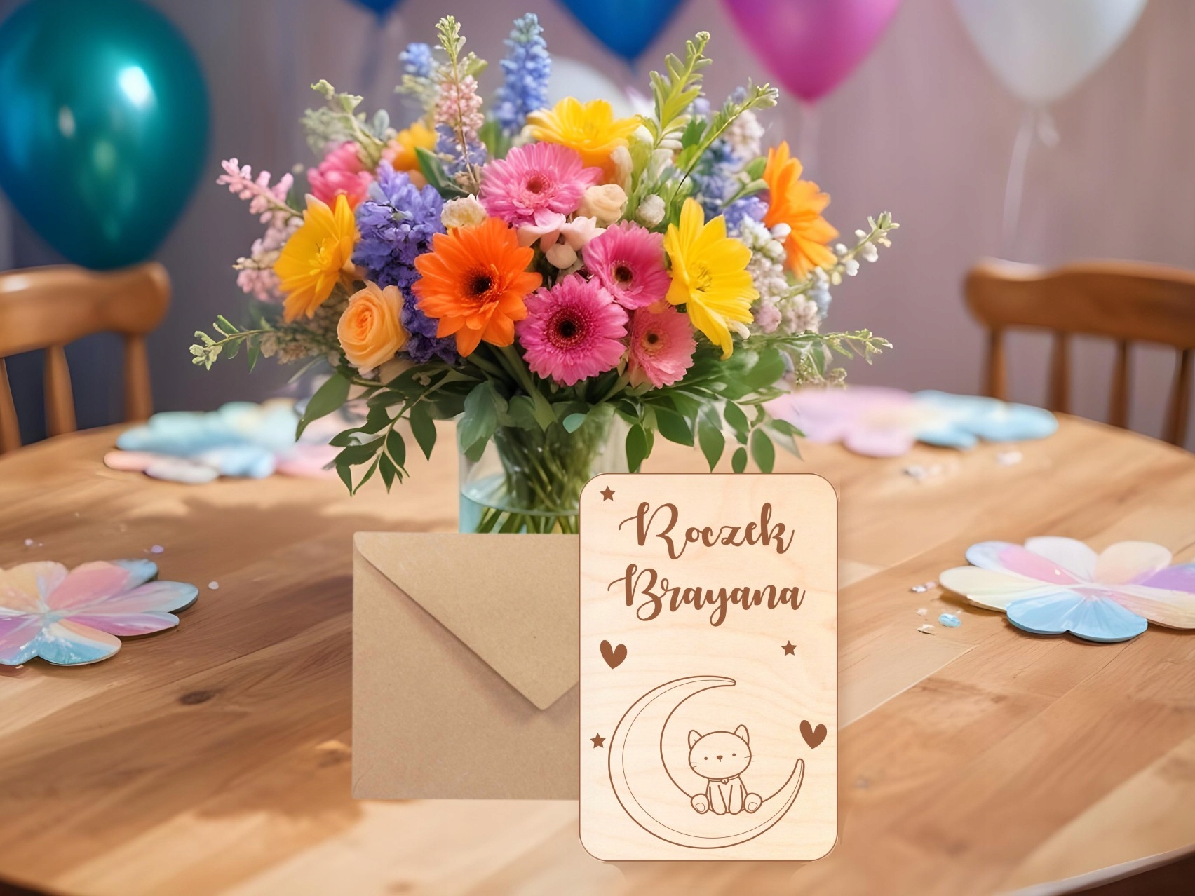 деревянный сувенир - открытка на день рождения - год, 2 3 4 лет и другие + персонализацию h1> - дорумно -то выгравирована (10 x 15 см) h2>