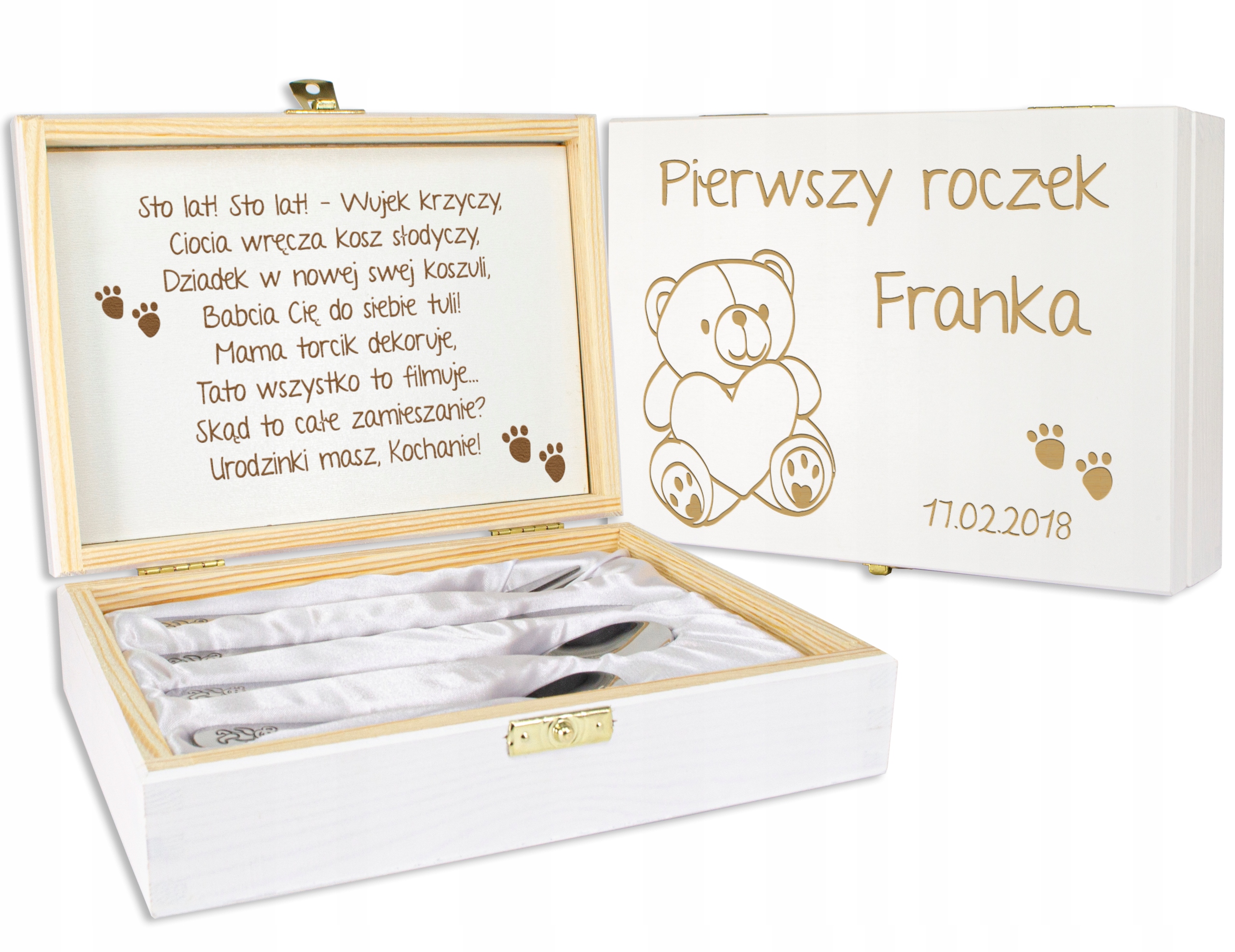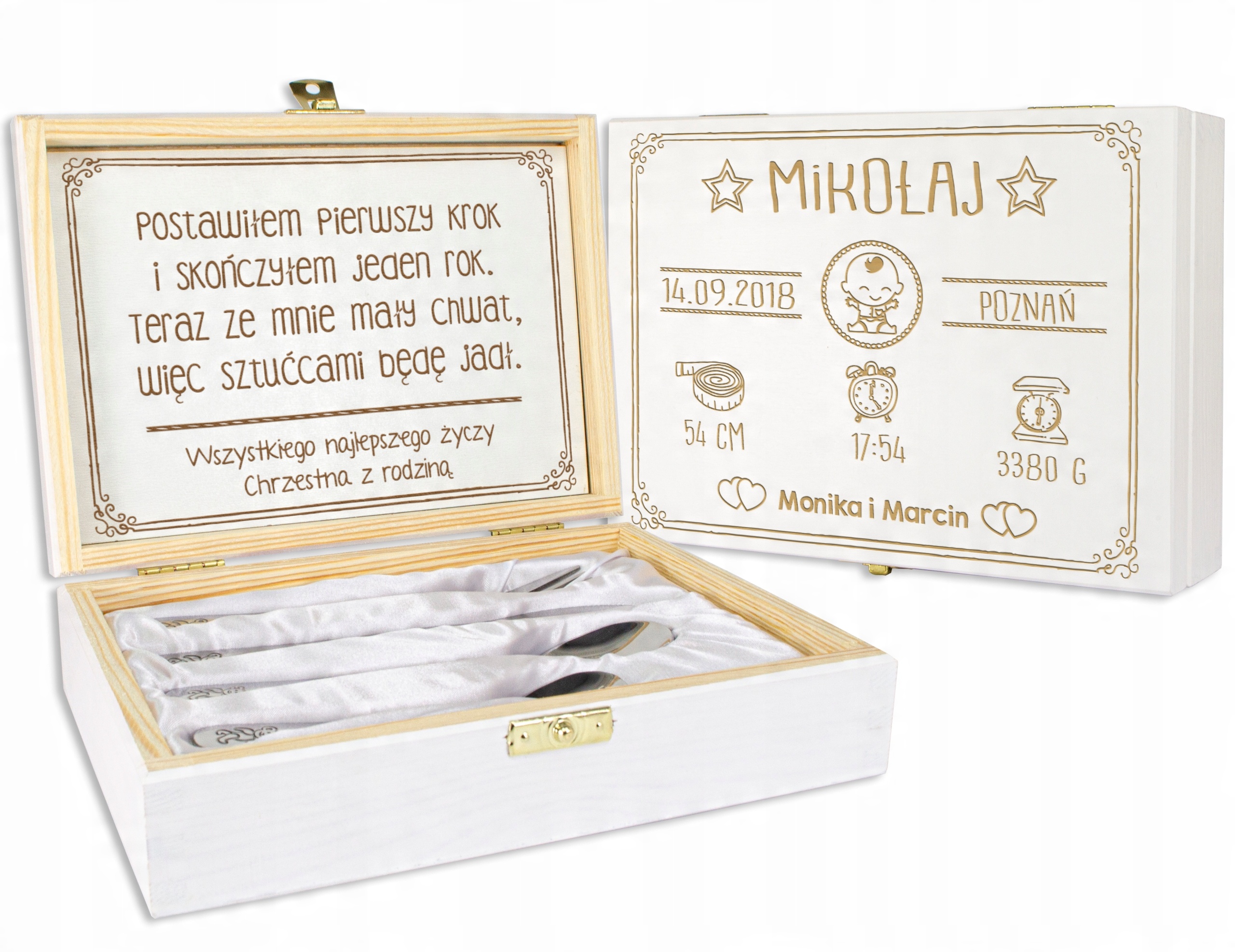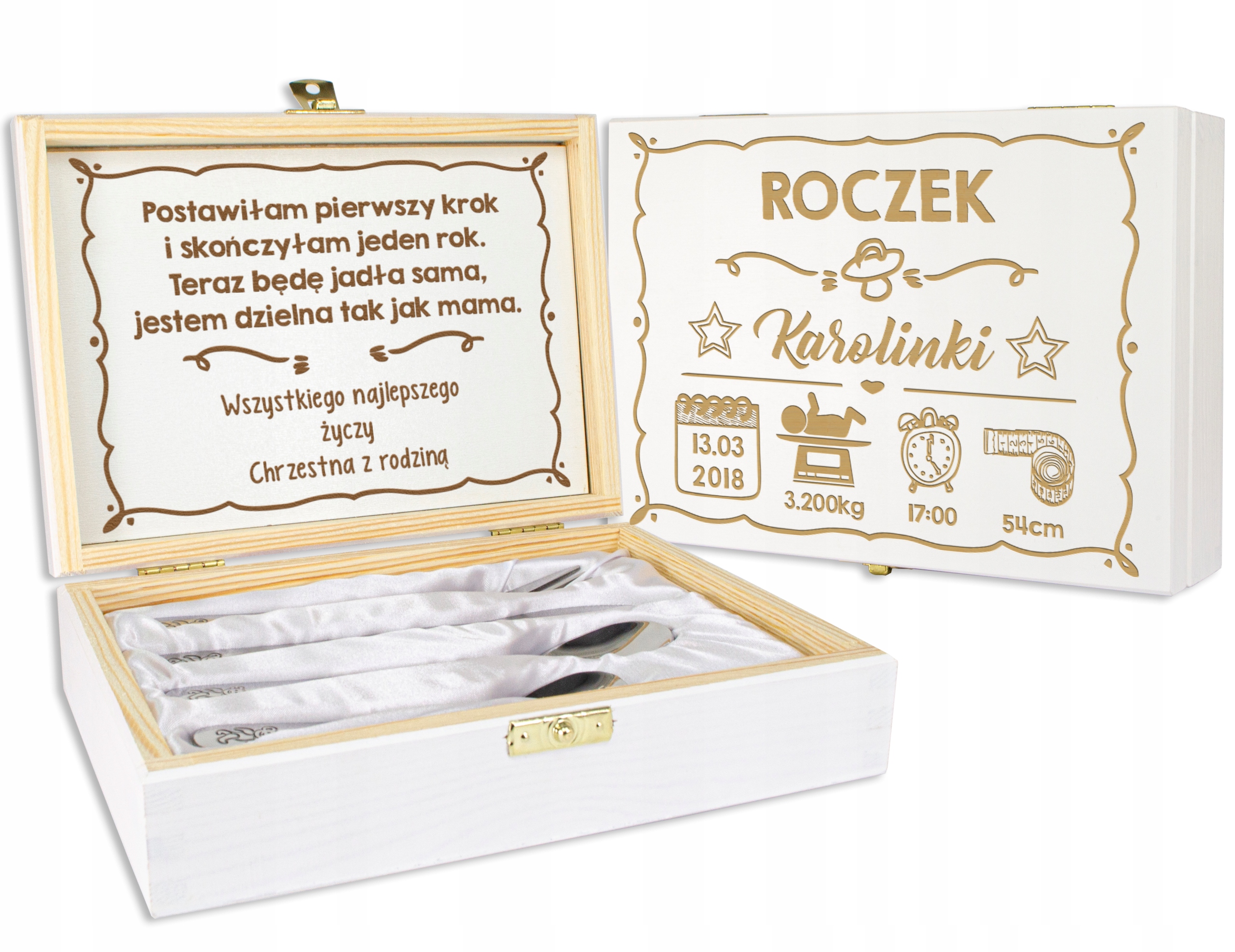 БЕЛАЯ КОРОБКА С ГРАВИРОВКОЙ ДЛЯ ГОДА РЕБЕНКА СО СТОЛОВЫМИ ПРИБОРАМИ