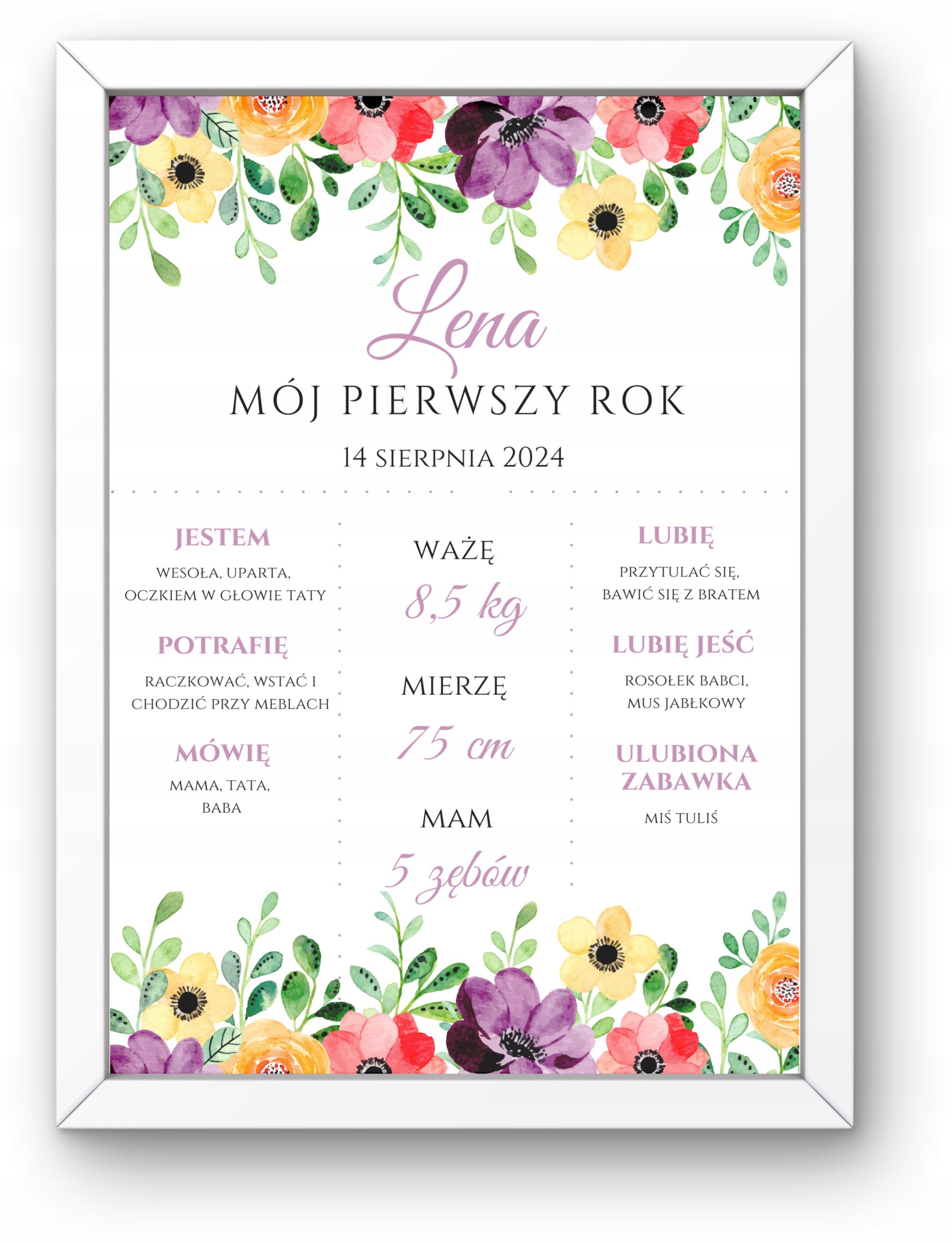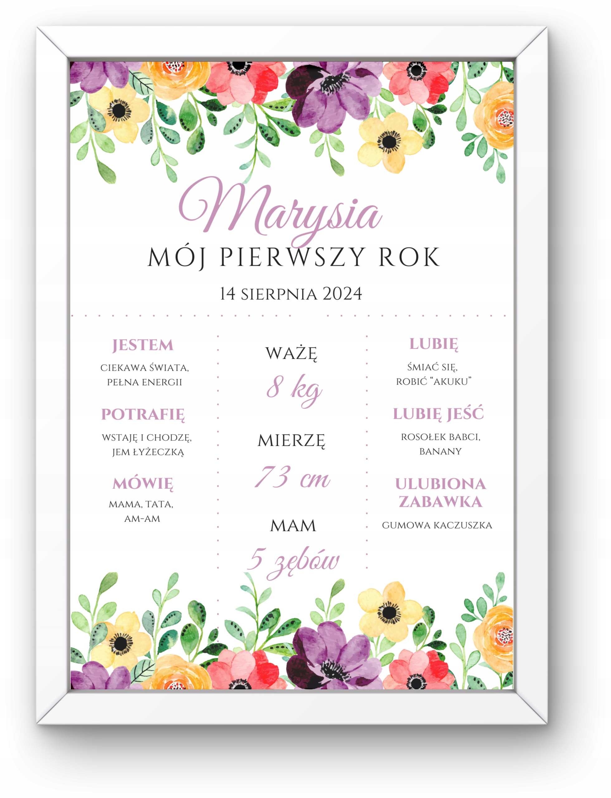 Каждый плакат персонализирован с указанием имени и дня рождения ребенка, а также содержит информацию о его достижениях и любимых занятиях. Это не только украшение, но прежде всего бесценный сувенир.