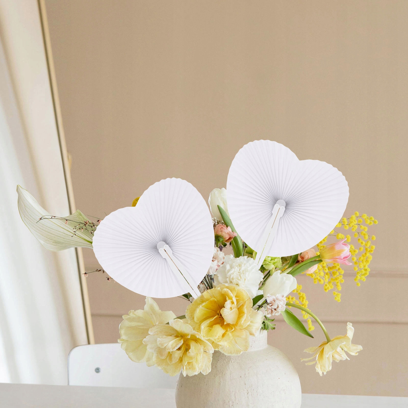 ✅Бумажный веер символизирует дружбу, уважение и добрые пожелания, поэтому их растущая популярность на свадьбах и празднованиях дней рождения. Этот продукт представляет собой складной ручной бумажный веер, изготовленный со специальным рисунком в форме сердца и чисто белого цвета. Он может стать украшением вечеринки или свадьбы и добавить вам романтическую атмосферу.