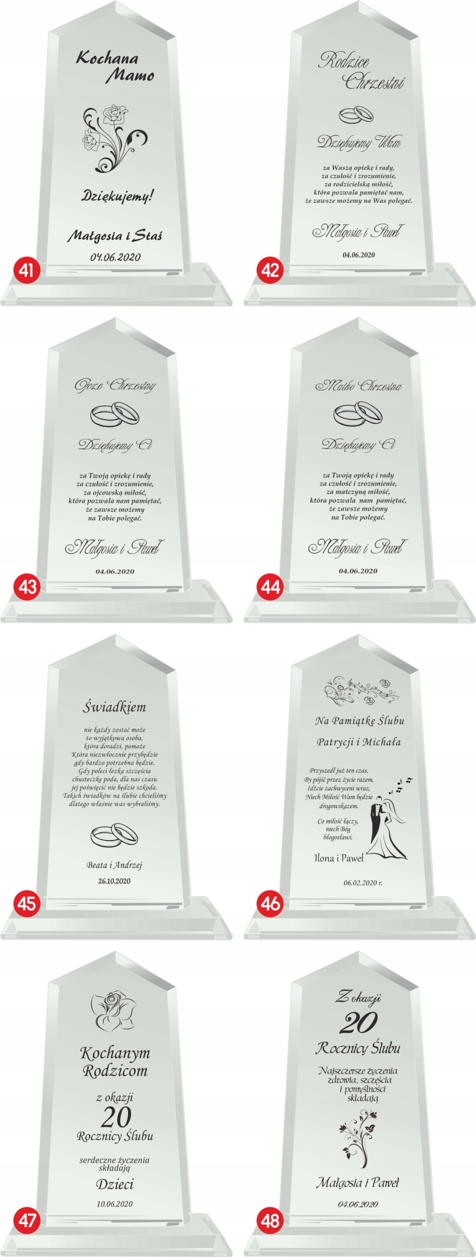 Тексты и варианты могут свободно изменяться по вашему усмотрению (тексты, отличные от представленных в наших вариантах, следует присылать в редактируемом виде, например, блокнот), а числа годовщин являются примерными значениями, которыеможно изменить.