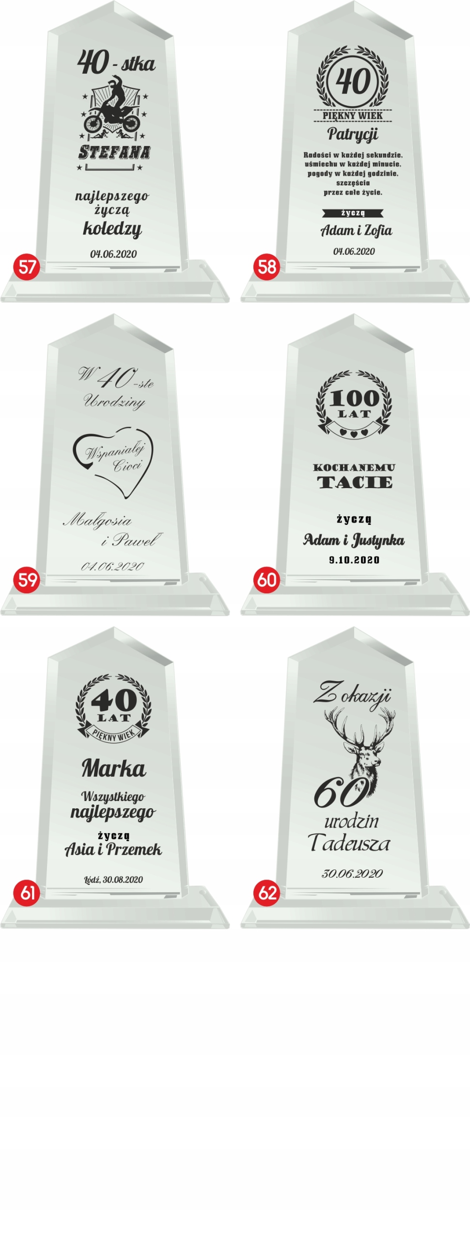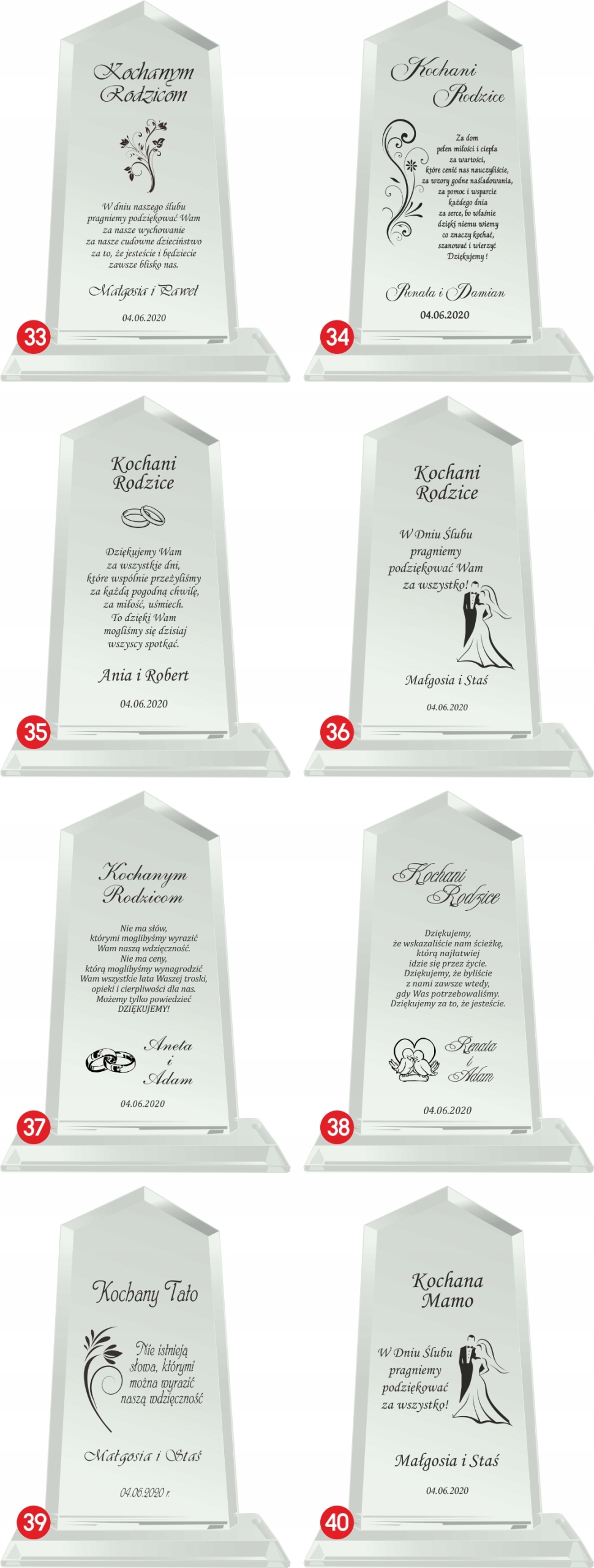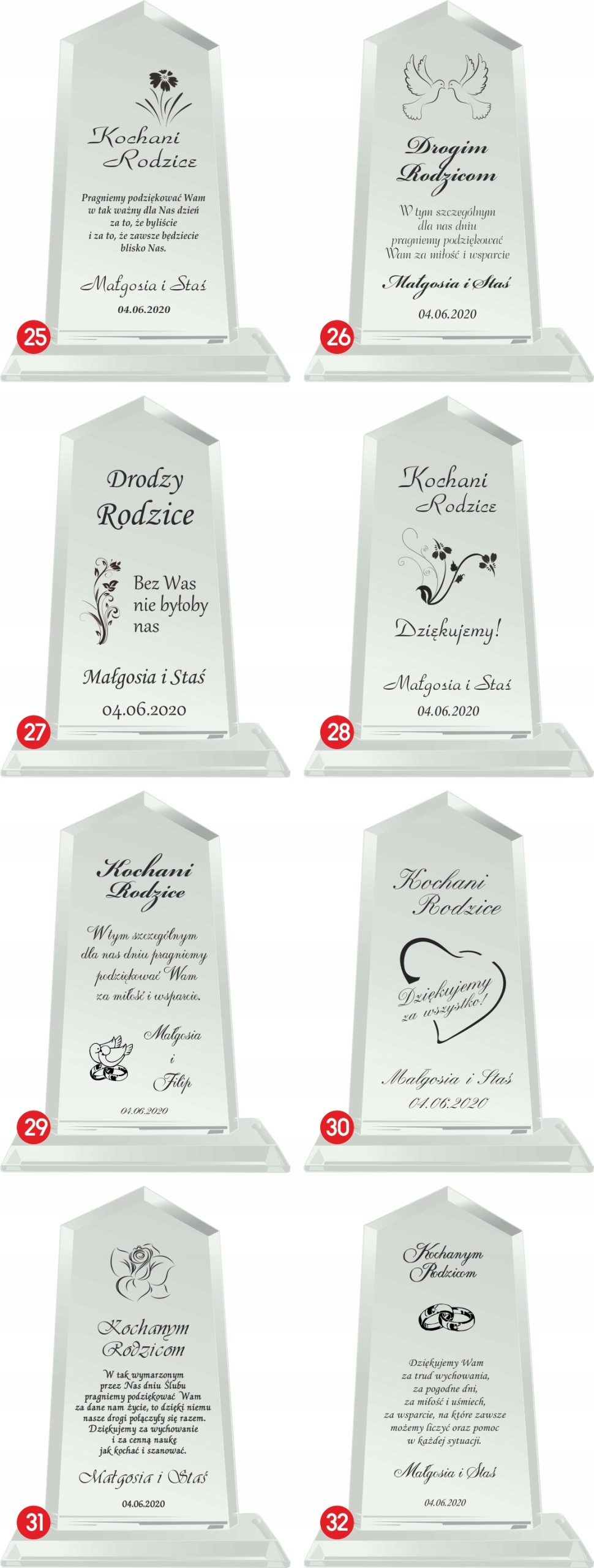 Если есть еще изменения, укажите их точно — опишите их нам подробно. Если выбранный номер гравировки требует дополнительных изменений или других данных, укажите их в примечании продавцу или отправьте отдельным электронным письмом. >Если ваши данные неполные, мы не сможем обработаем и отправим ваш заказ. Мы не несем ответственности за любые задержки, возникшие из-за неполной отправки заказа. Если благодарственное письмо планируется передать матери, отцу или другому лицу, опишите его подробно. Продавец сообщает, что изделия из хрусталя могут иметь на поверхности мелкие царапины и пузырьки воздуха, возникшие в процессе производства.