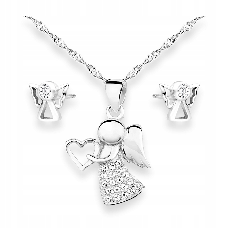 Красивое символическое серебряное колье с Ангелом-Хранителем и серьгами в форме ангелов./p>