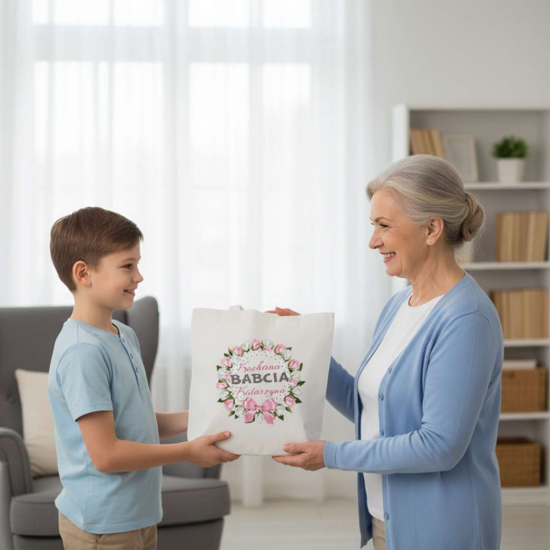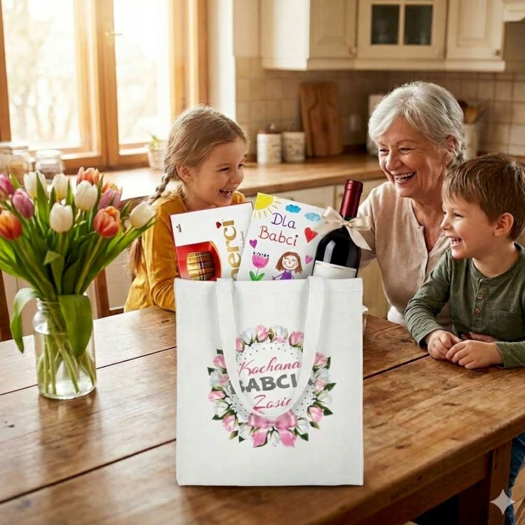 🎁 Перед вами уникальная именная сумка с надписью «Дорогая бабушка (имя бабушки)». Такой подарок наверняка вызовет улыбку у получателя. Хорошая идея подарка на День бабушки.