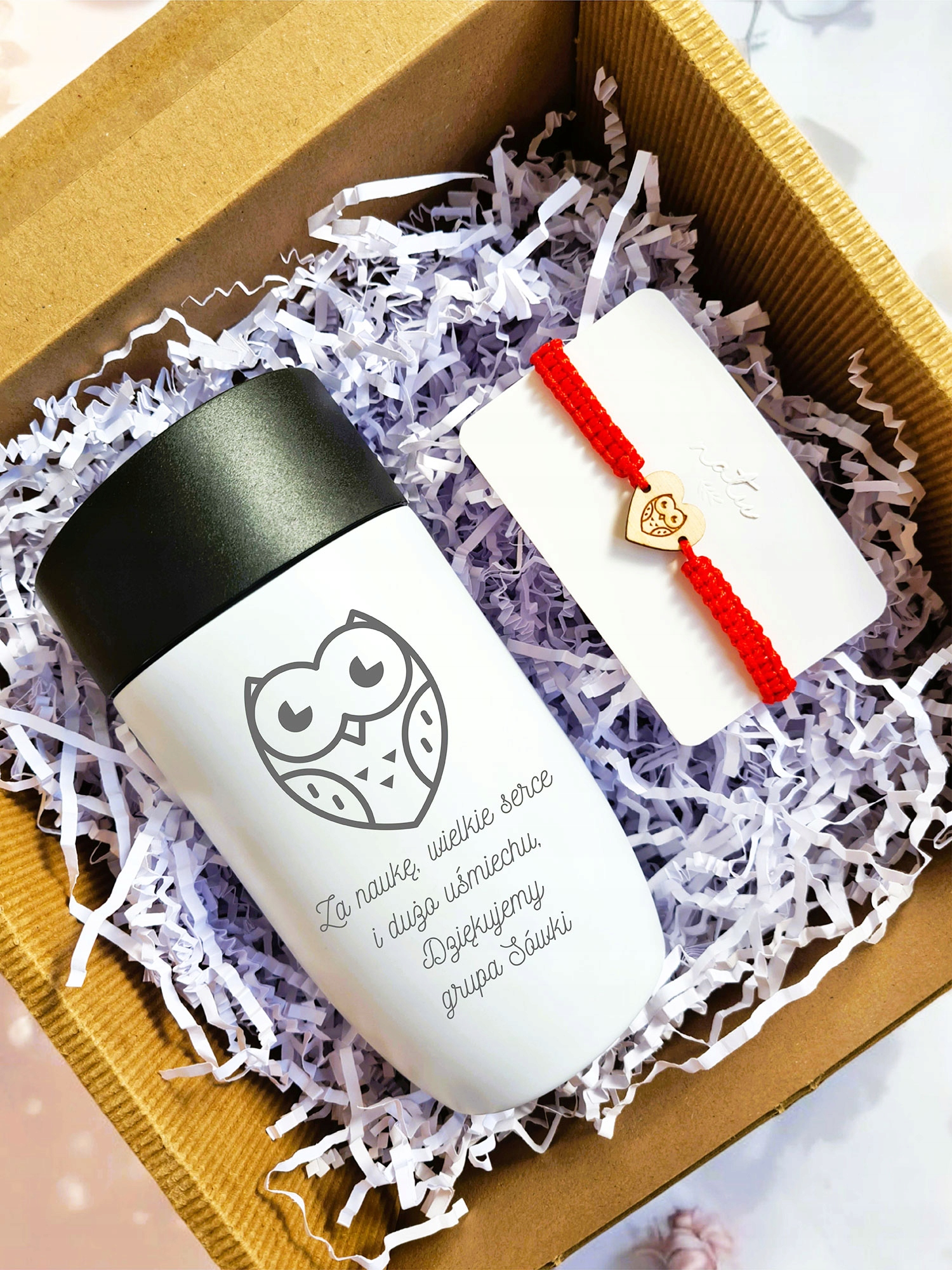Набор «Браслет и термокружка» бережно упакован в крафтовую коробку, т. е. подарок готов к вручению.< /h2>Персонализация кружки: