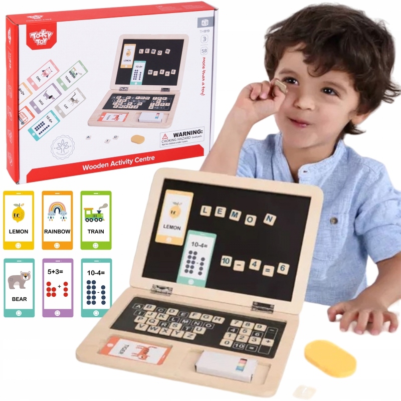 Tooky Toy Деревянная доска-головоломка с алфавитом для ноутбука - игрушка, содержащая буквы, карточки с животными с их названиями и математическими расчетами. В набор входят мел и губка, ведь дети могут писать и рисовать на доске все, что захотят. Благодаря игре детям также будет предложено придумывать слова по подготовленным образцам карточек. Отличный способ выучить правописание и словесные ассоциации, а также выучить английский язык. Такое учебное пособие будет полезно каждому ребенку при подготовке к школе. Стоит стимулировать будущего студента к приобретению новых знаний и навыков посредством такой увлекательной игры. Благодаря этому учиться никогда не бывает скучно!