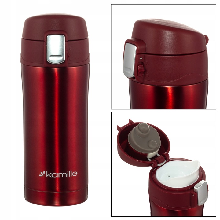 Корт включает в себя: h1> - Тепловая кружка Камилля - b> в красивом красном атласном цвете. В настоящее время это обязательное оборудование для тех, кто живет быстро и интенсивно, но не только :) у вас не всегда есть время, чтобы наслаждаться любимым напитком в мире? Вылейте его в тепловую чашку и наслаждайтесь этим на дороге или на работе. Это будет сохранять идеальную температуру в течение нескольких часов! Благодаря высококачественной из нержавеющей стали 18/10 и вакуумной изоляции, чашка в течение длительного времени поддерживает температуру напитка - как горячей, так и холодной. Ничто не будет разливаться, потому что это на 100% плотно, кроме того, у него есть возможность блокировать кнопку, которая обеспечивает дополнительную защиту от случайного открытия.