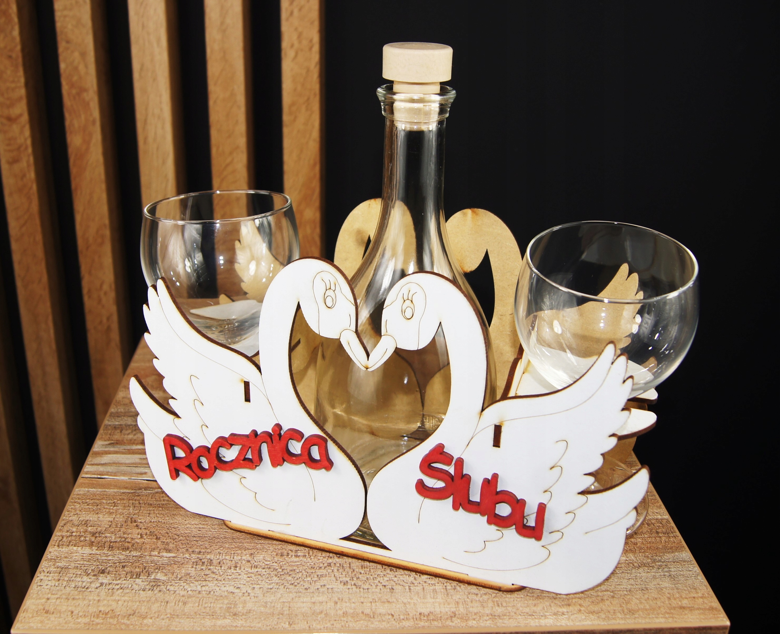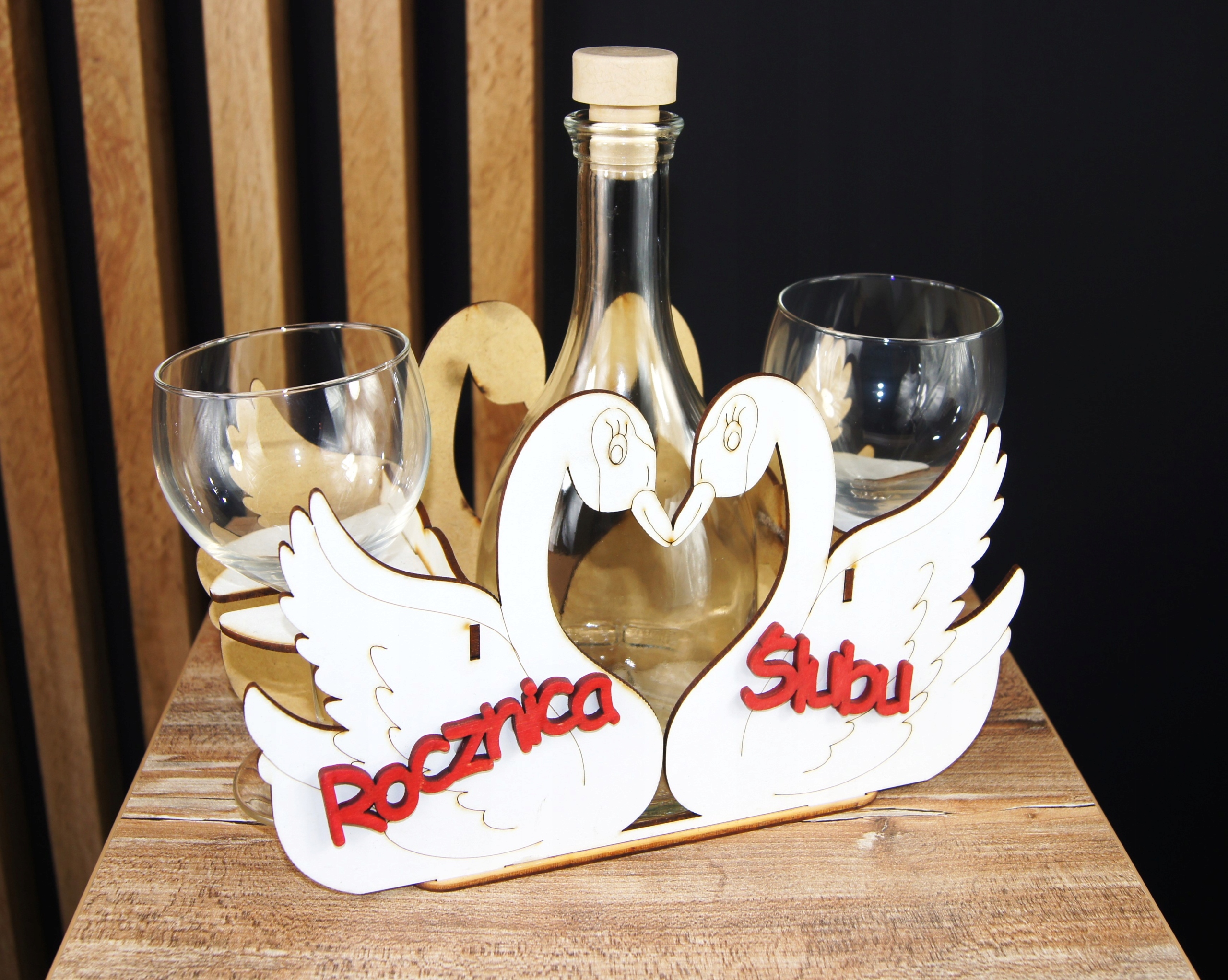 ❤️ В комплект входит деревянная подставка «Лебедь», графин емкостью 0,5 л и 2 стакана емкостью 200 мл.