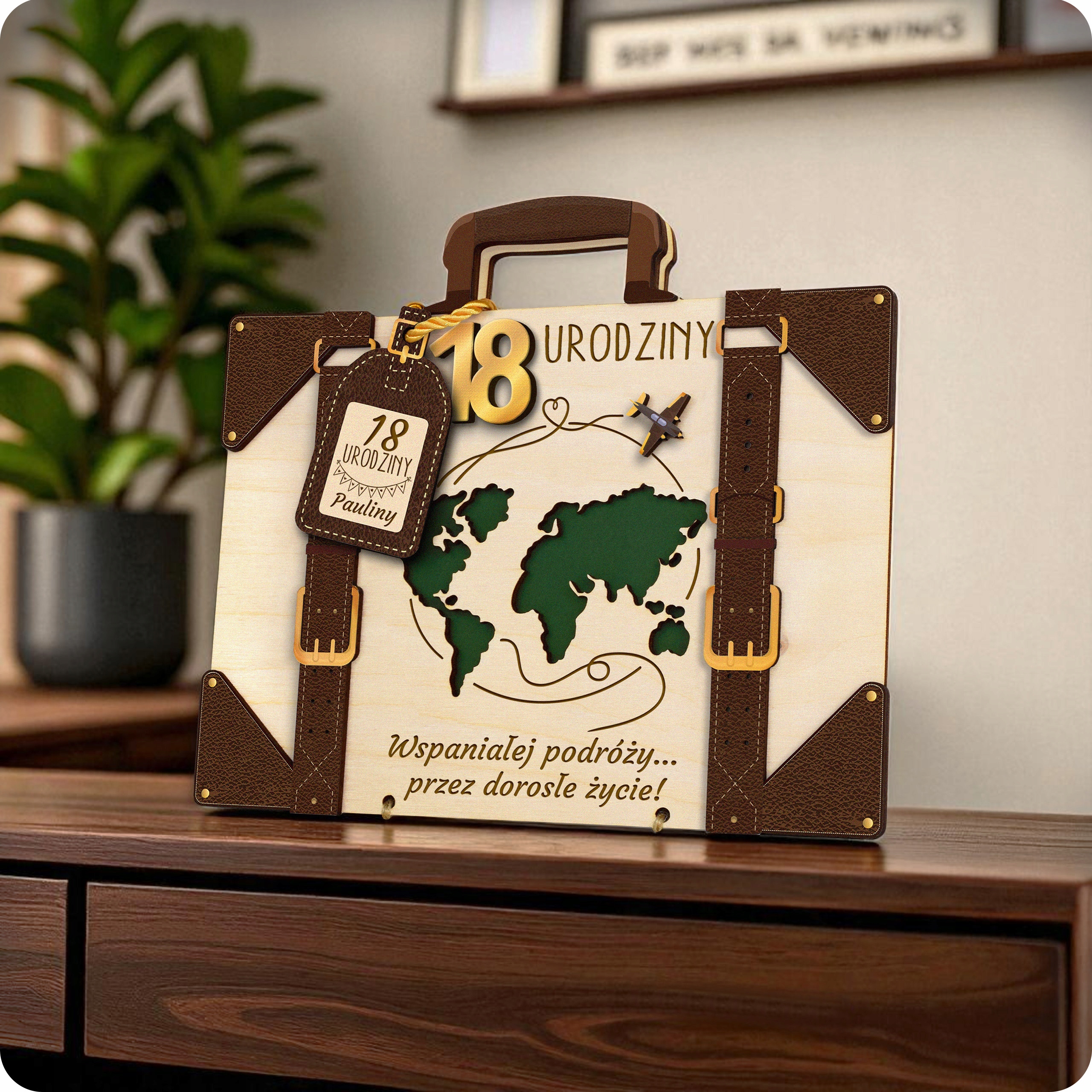⭐ Оригинальный подарок на 18 лет – деревянная открытка-чемодан с персонализацией и декоративный конверт для денег!