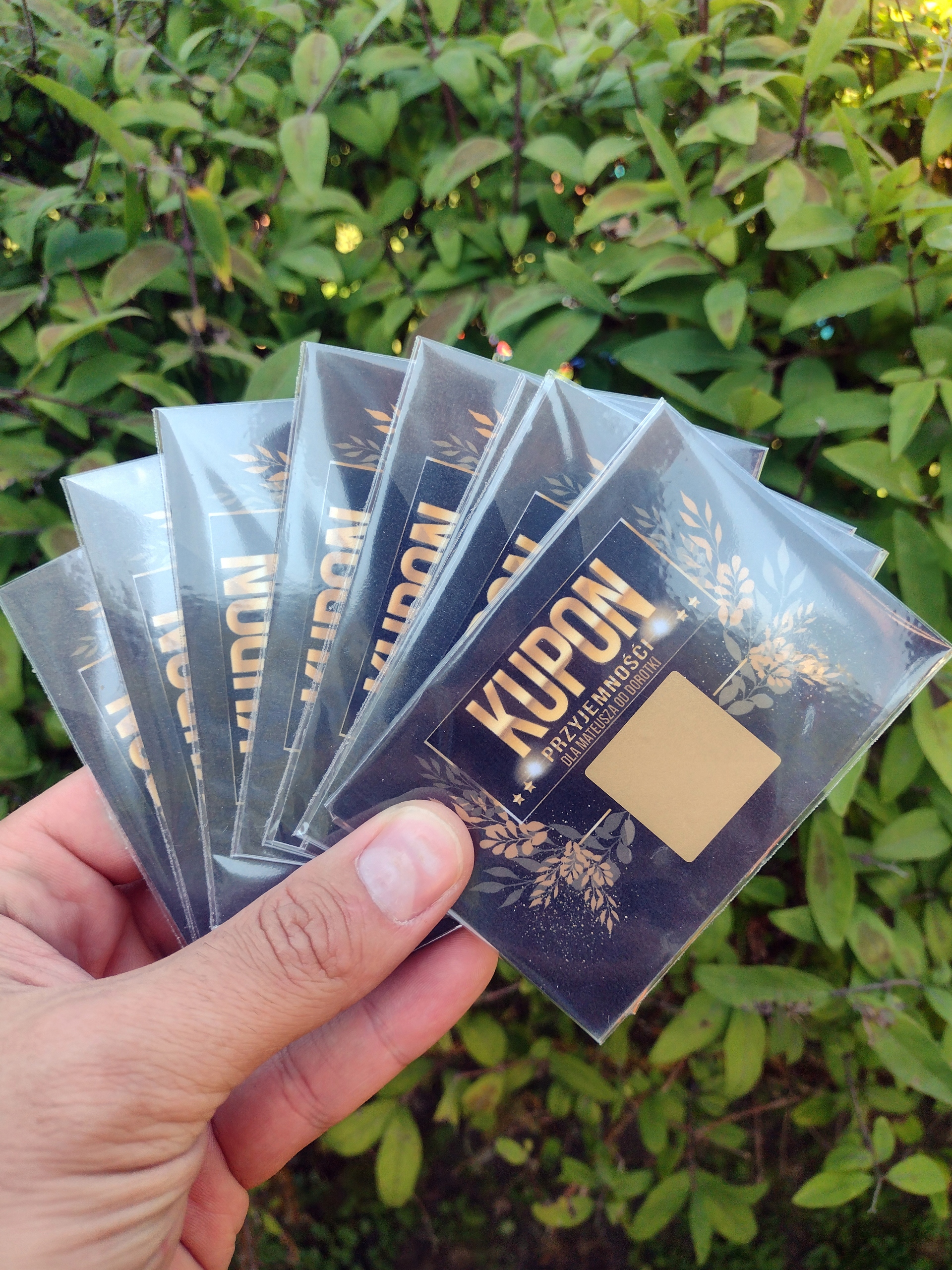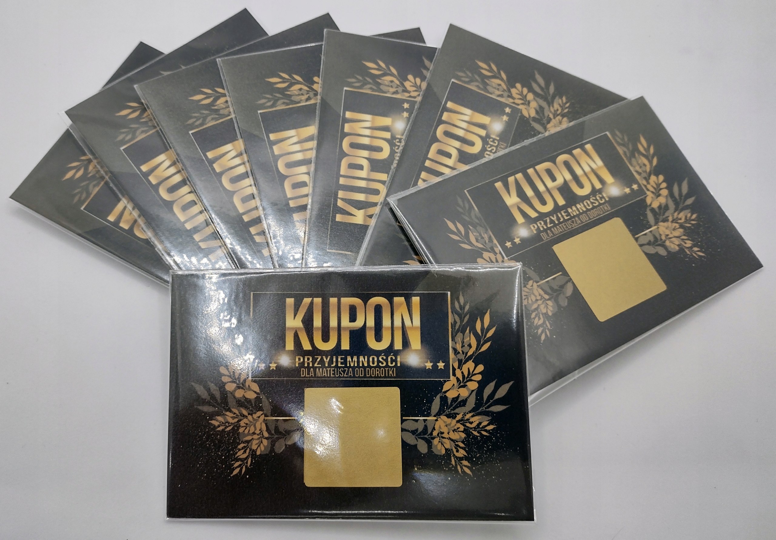 Купоны напечатаны на плотной атласной бумаге, каждый ламинирован! Очень жесткие, скретч-карты легко царапаются!