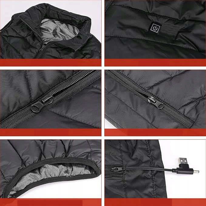 PODGRZEWANA KAMIZELKA DLA MĘŻCZYZN I KOBIET, PODGRZEWANA KAMIZELKA, CZARNY
