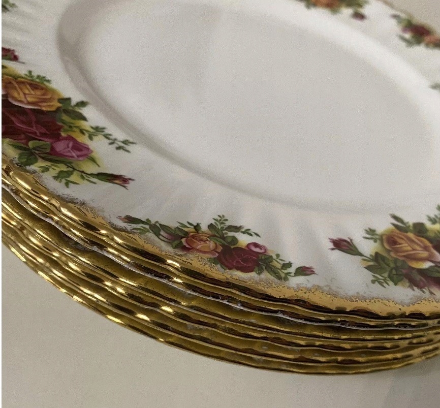 Пластины для завтрака - 6 штук - изготовлены из королевского кости фарфора, подписанного с знак ярлыка, украшенного 22 каратным золотом p>