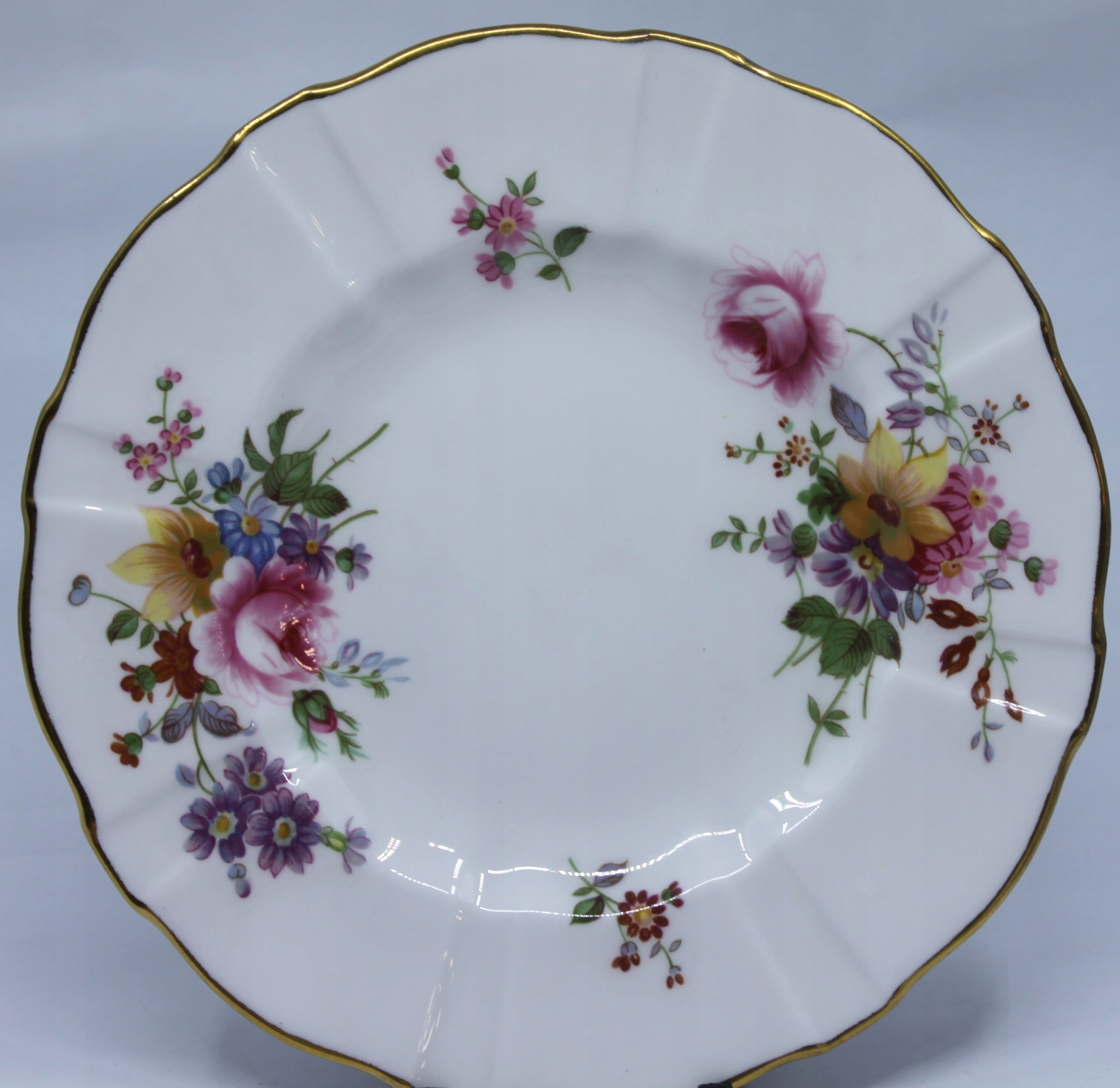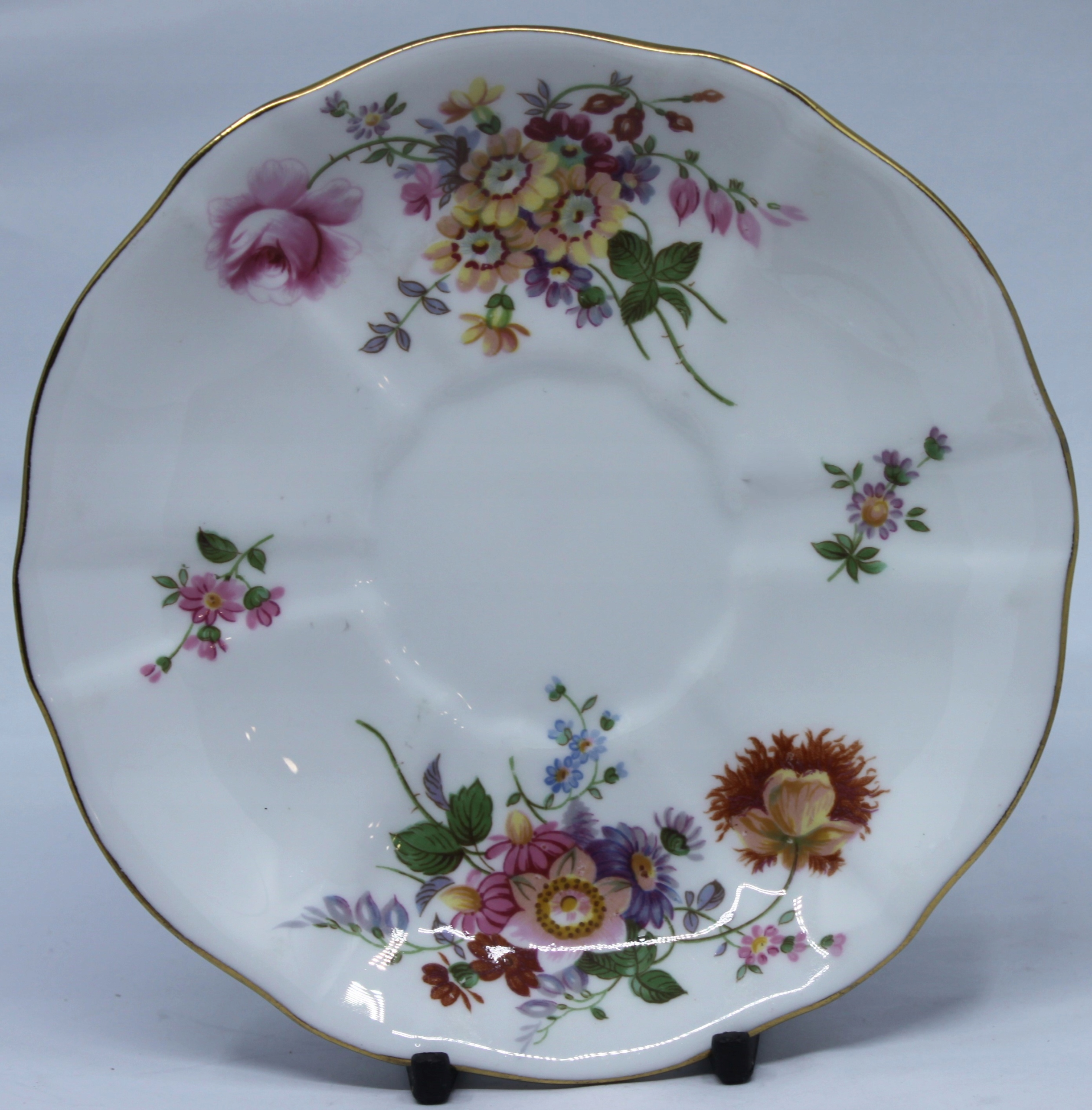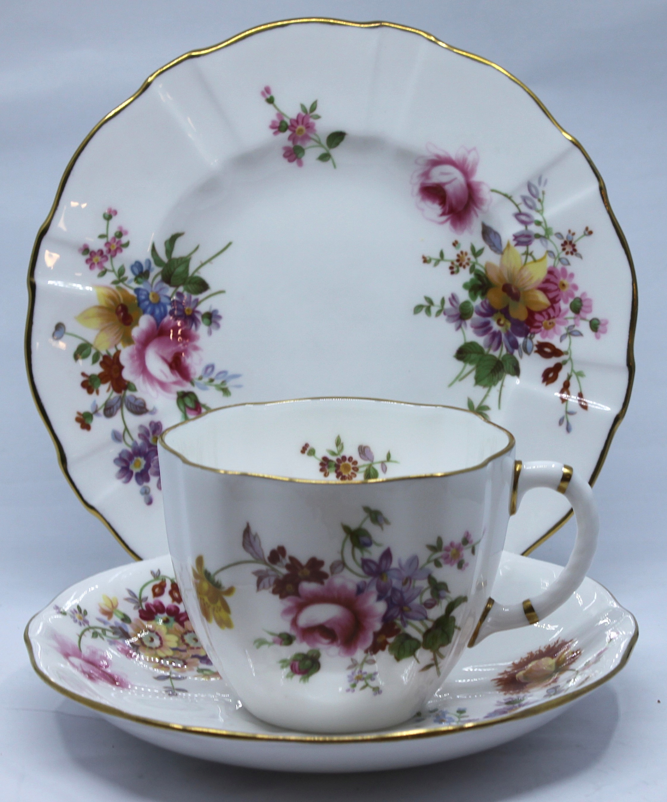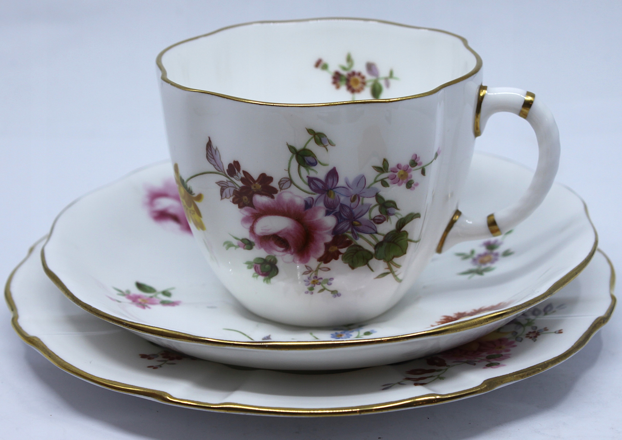 Чашка с блюдцом и тарелкой из королевского костяного фарфора, отделанной 22 -каратным золотом, рисунком сидения