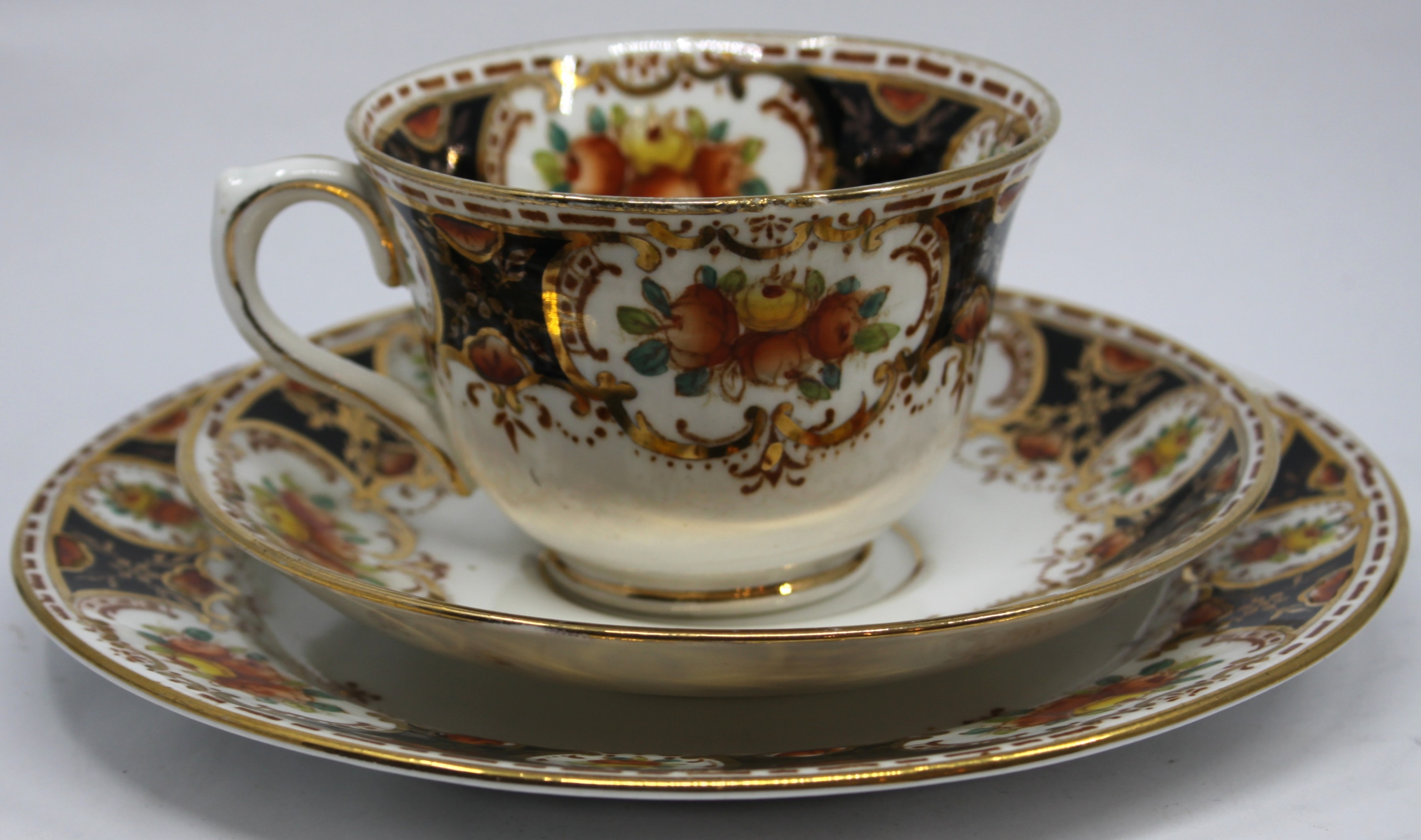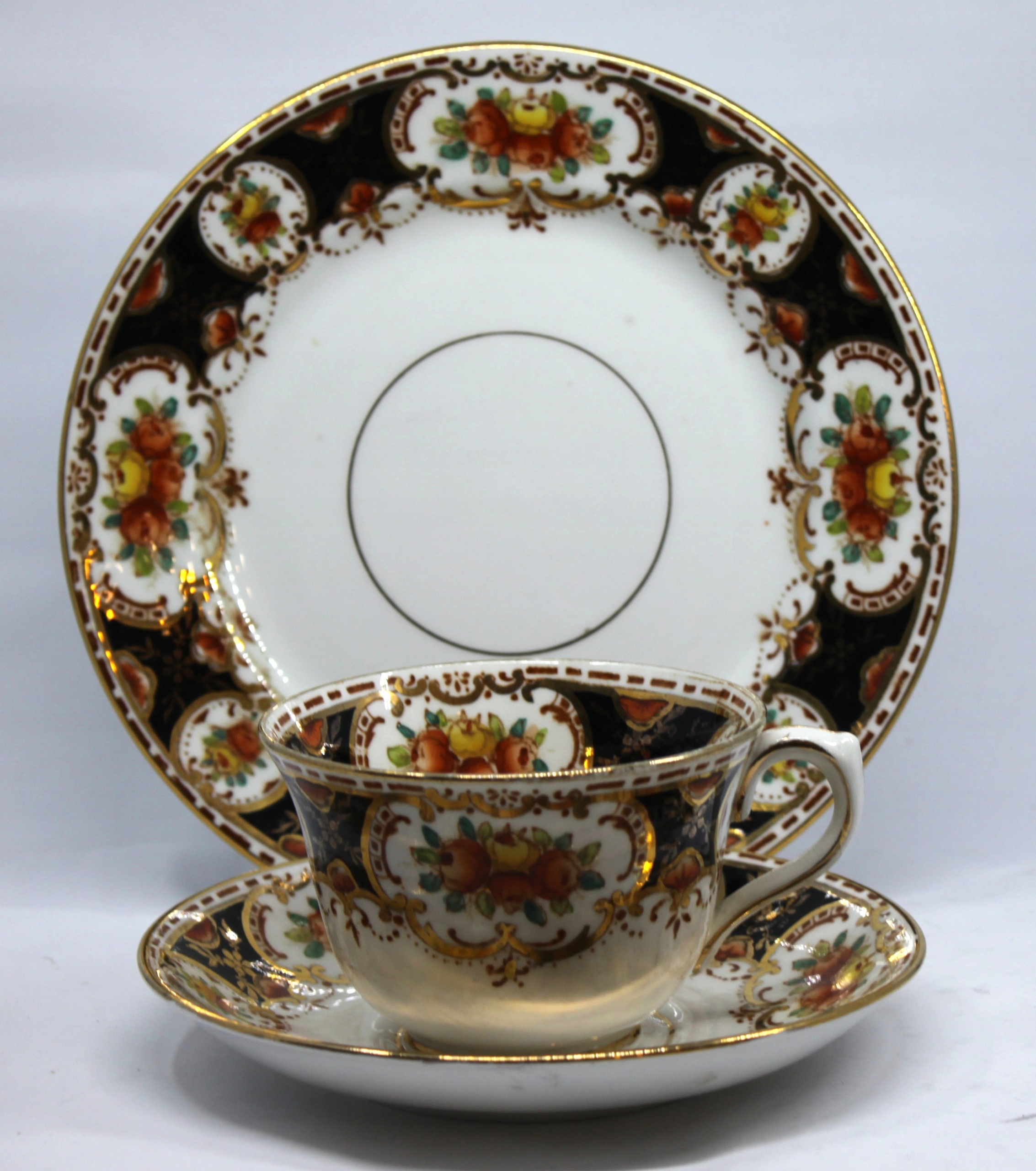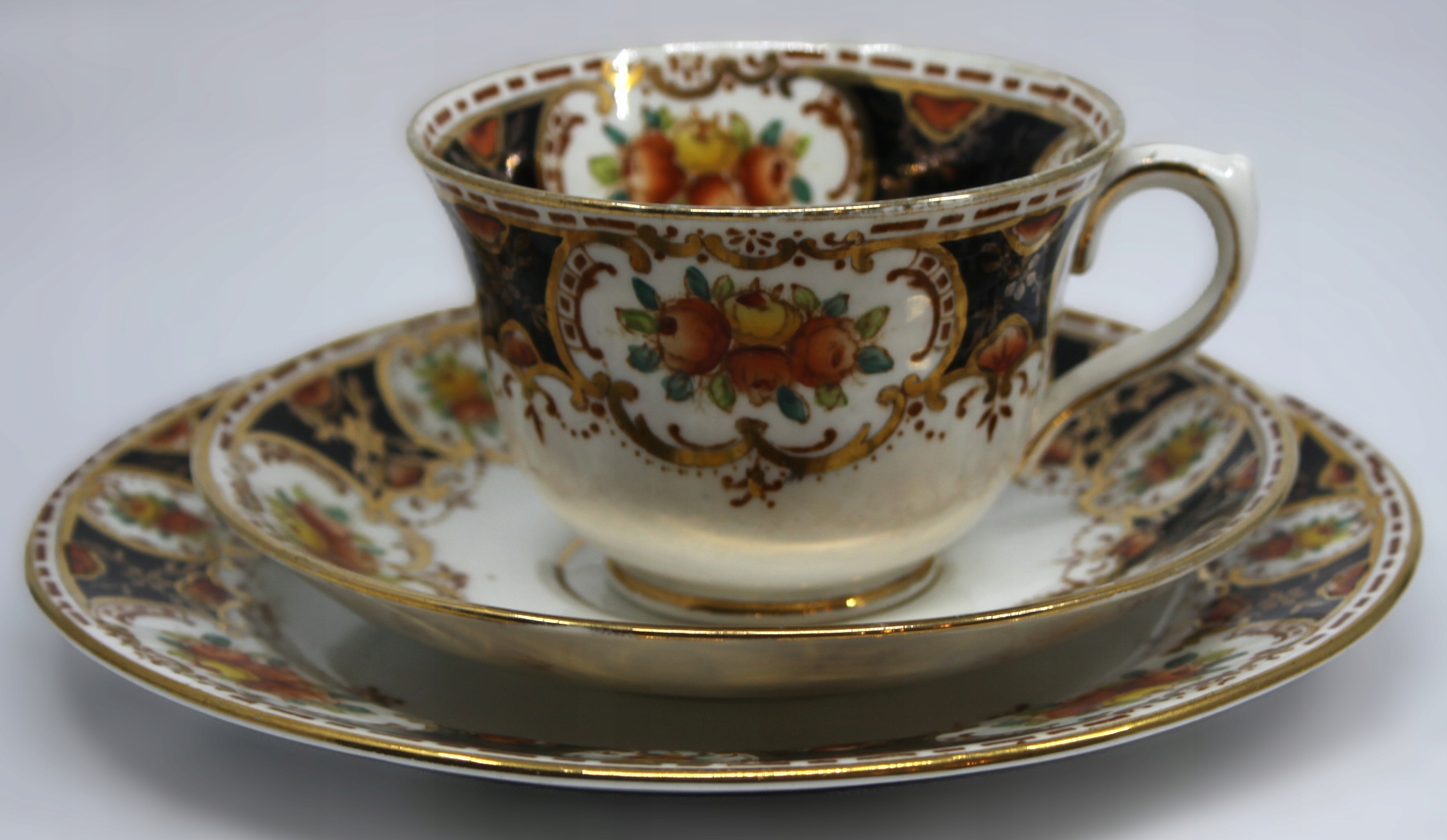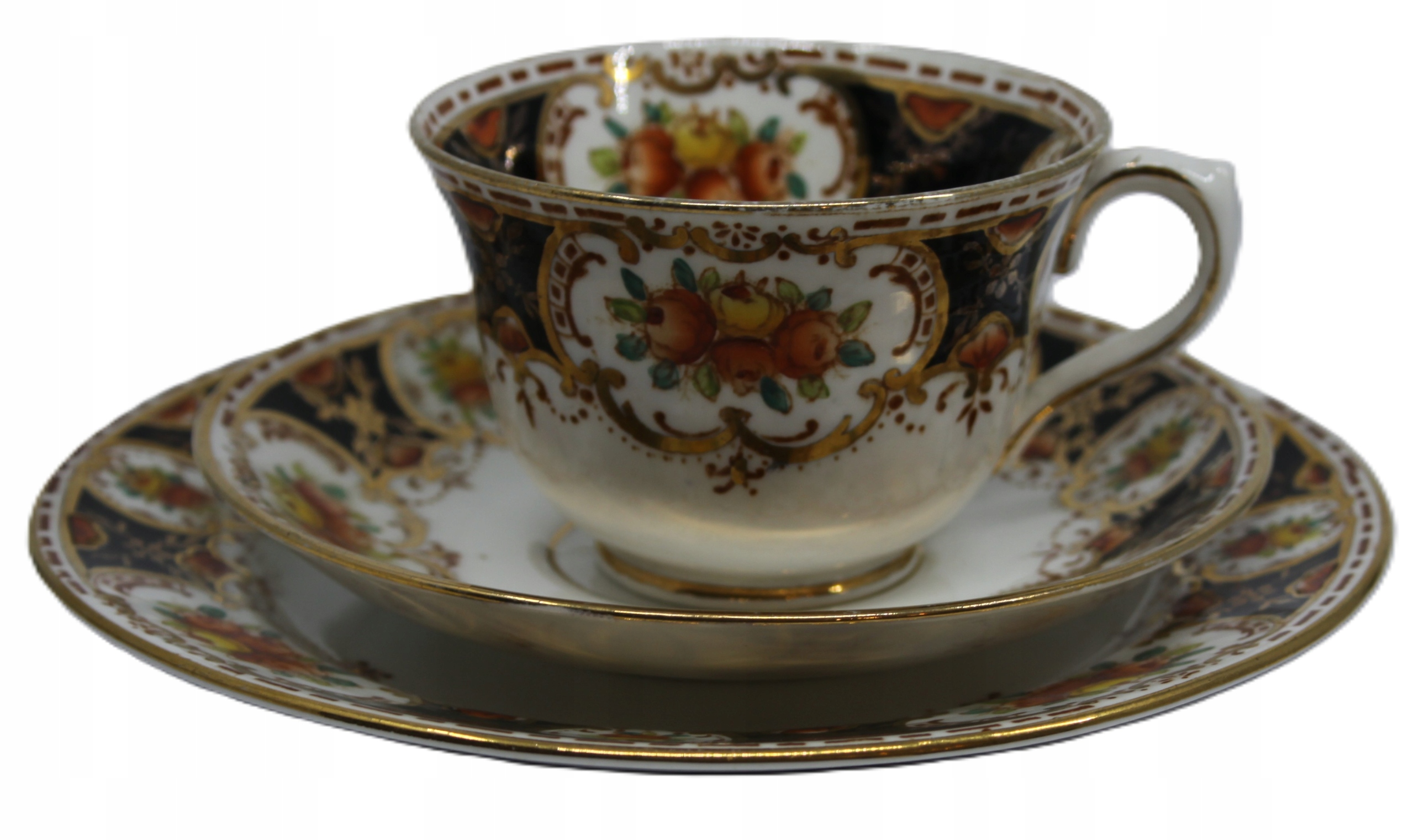 чашка с блюдцей и тарелкой из костей фарфора подписано