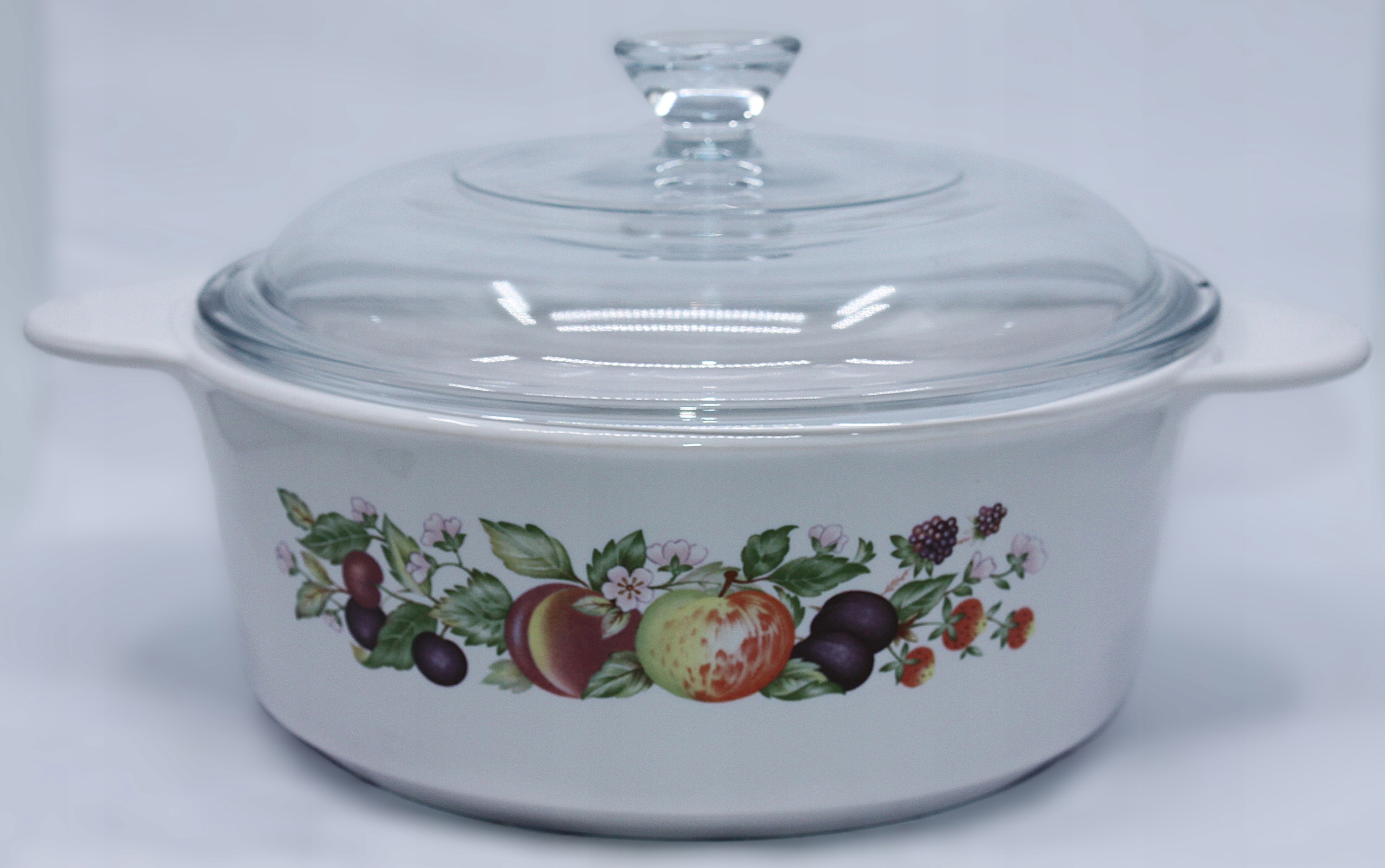 Тепло -резистентный сосуд из фарфора, стеклянная крышка, подписанная с знак метки,