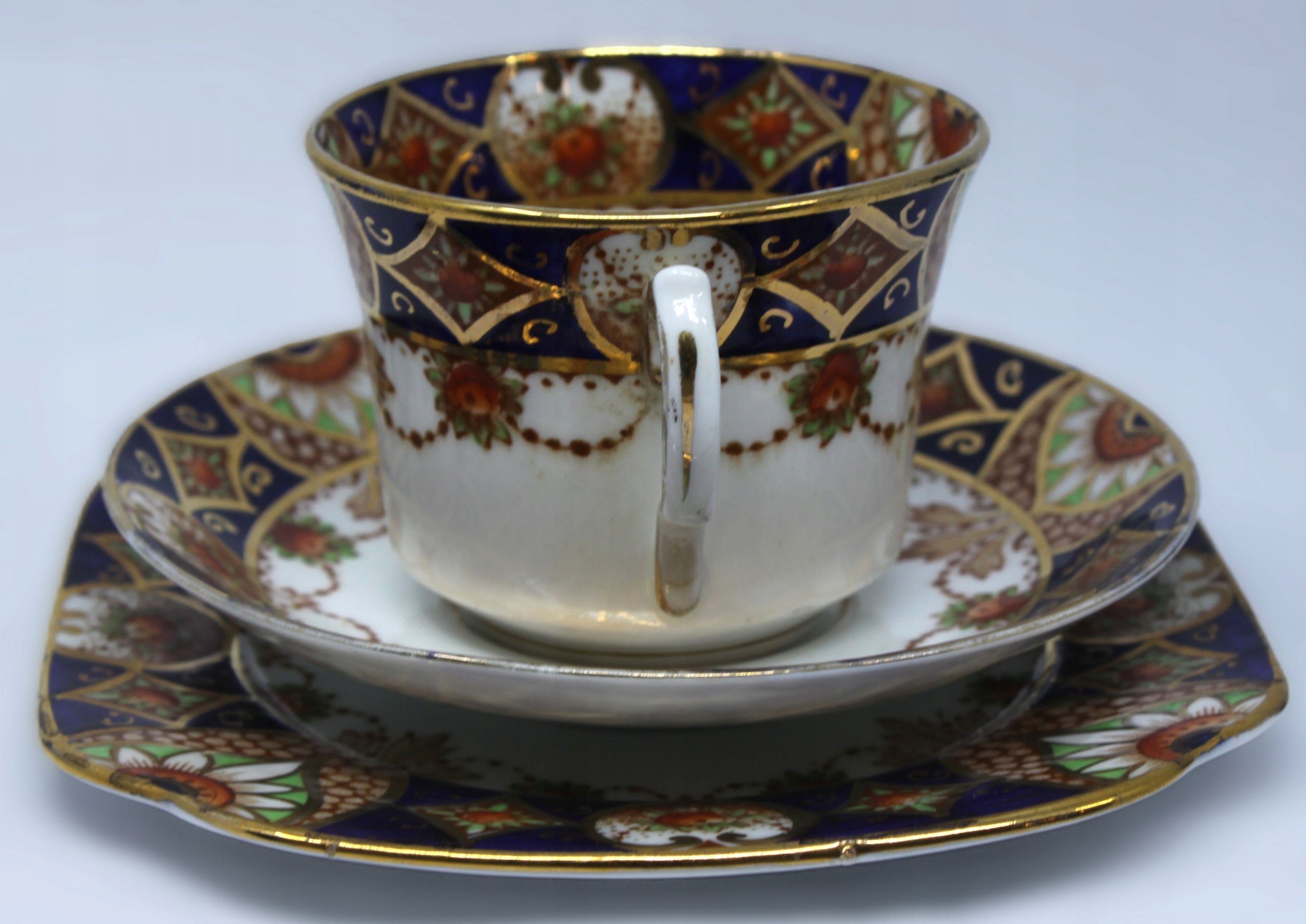 чашка с блюдцом и тарелкой из костей фарфора подписано