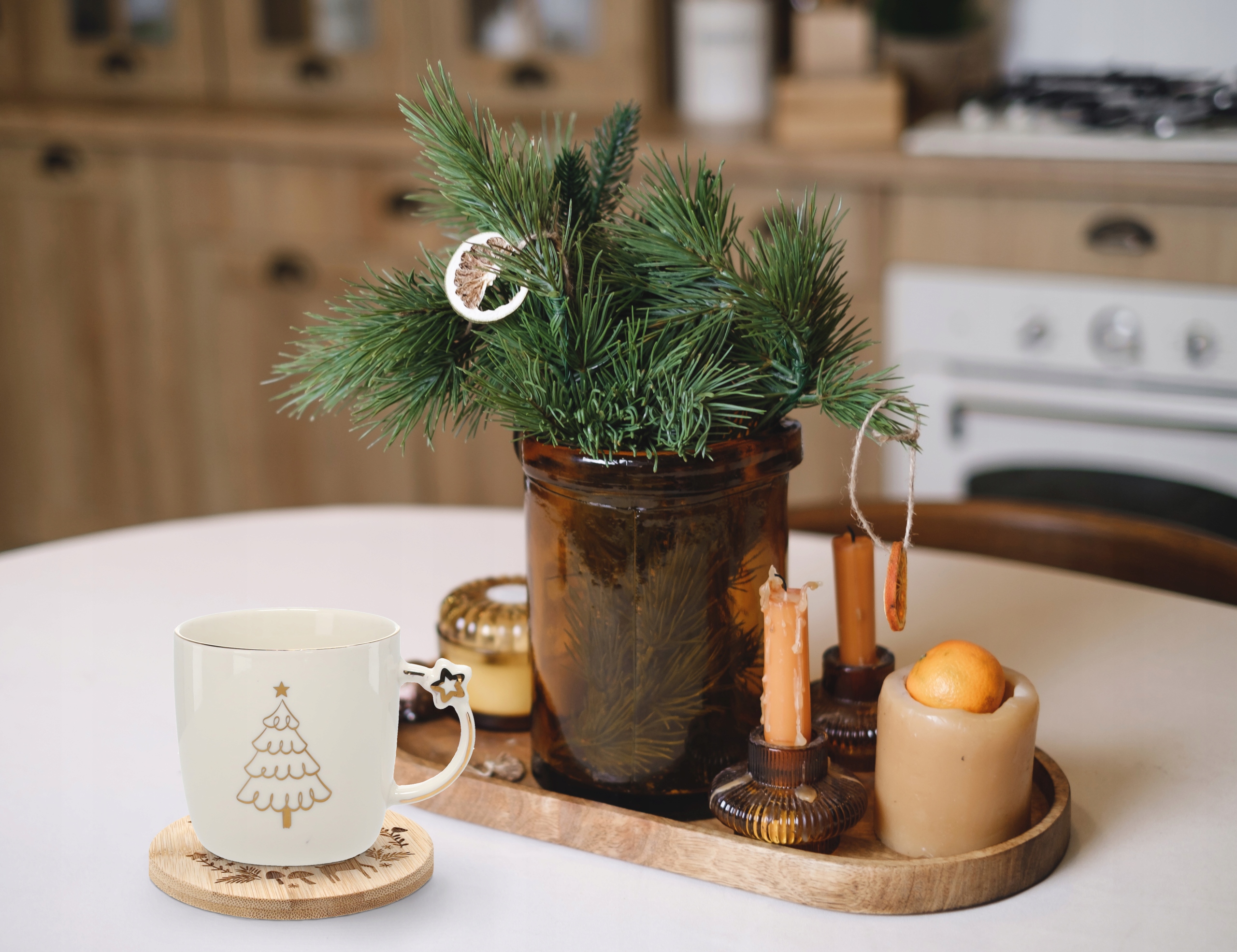 PODKŁADKI POD KUBEK ŚWIĄTECZNE KOMPLET 4 BAMBUSOWYCH PODKŁADEK ŚWIĄTECZNYCH