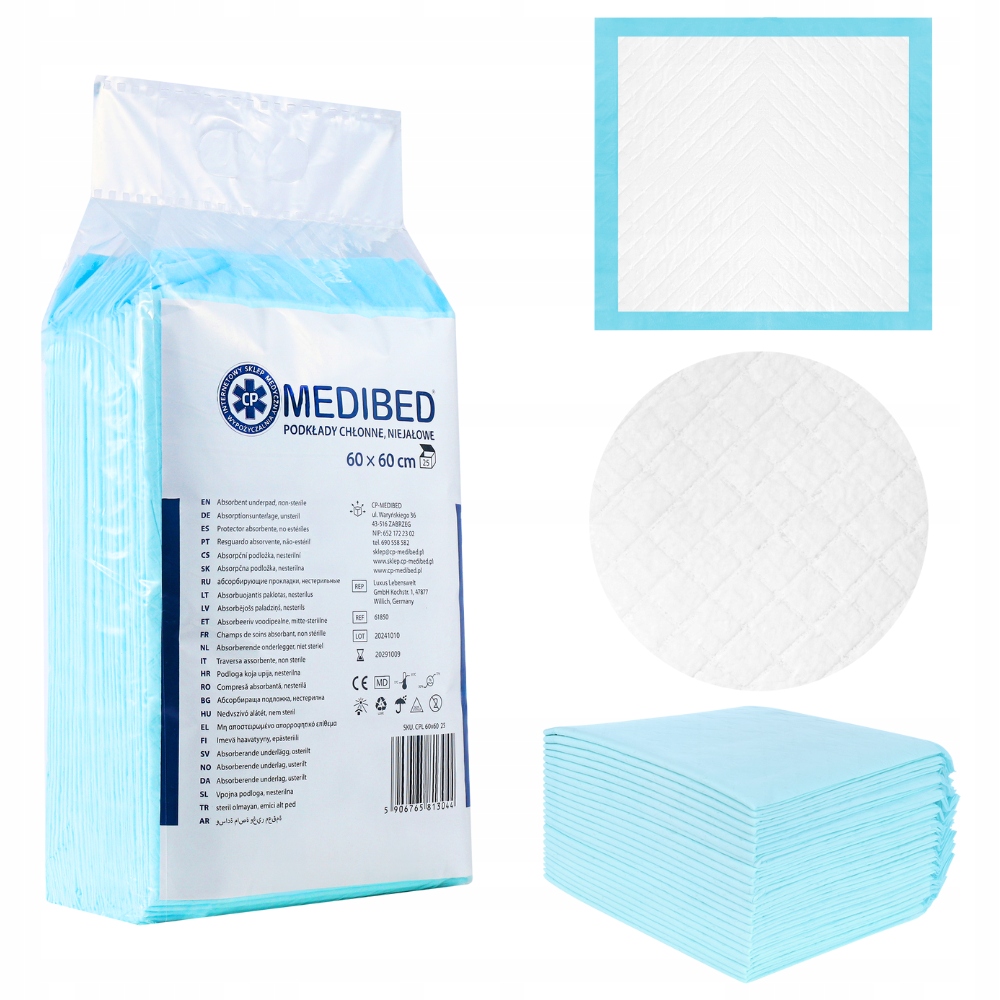 PODKŁADY CHŁONNE do przewijania MEDIBED 60X60 MOCNE niejałowe 25 SZT. 560ml