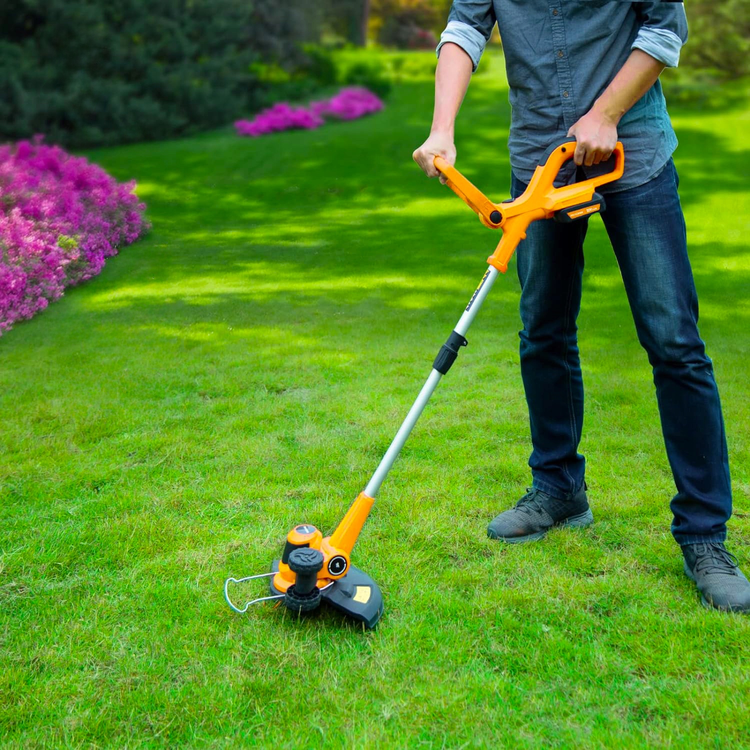 ⭐ Триммер предназначен для точной стрижки травы вокруг деревьев, под кустами, у заборов, у бордюров.