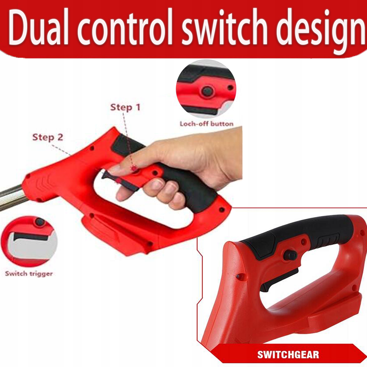 Эргономичная, мягкая, резиновая и нескользящая ручка этого беспроводного устройства для сбора сорняков удобна и удобна в использовании. Чтобы начать, одновременно нажмите кнопку блокировки и кнопку запуска, а через две секунды отпустите кнопку блокировки, чтобы сохранить ее защищенной и надежной.