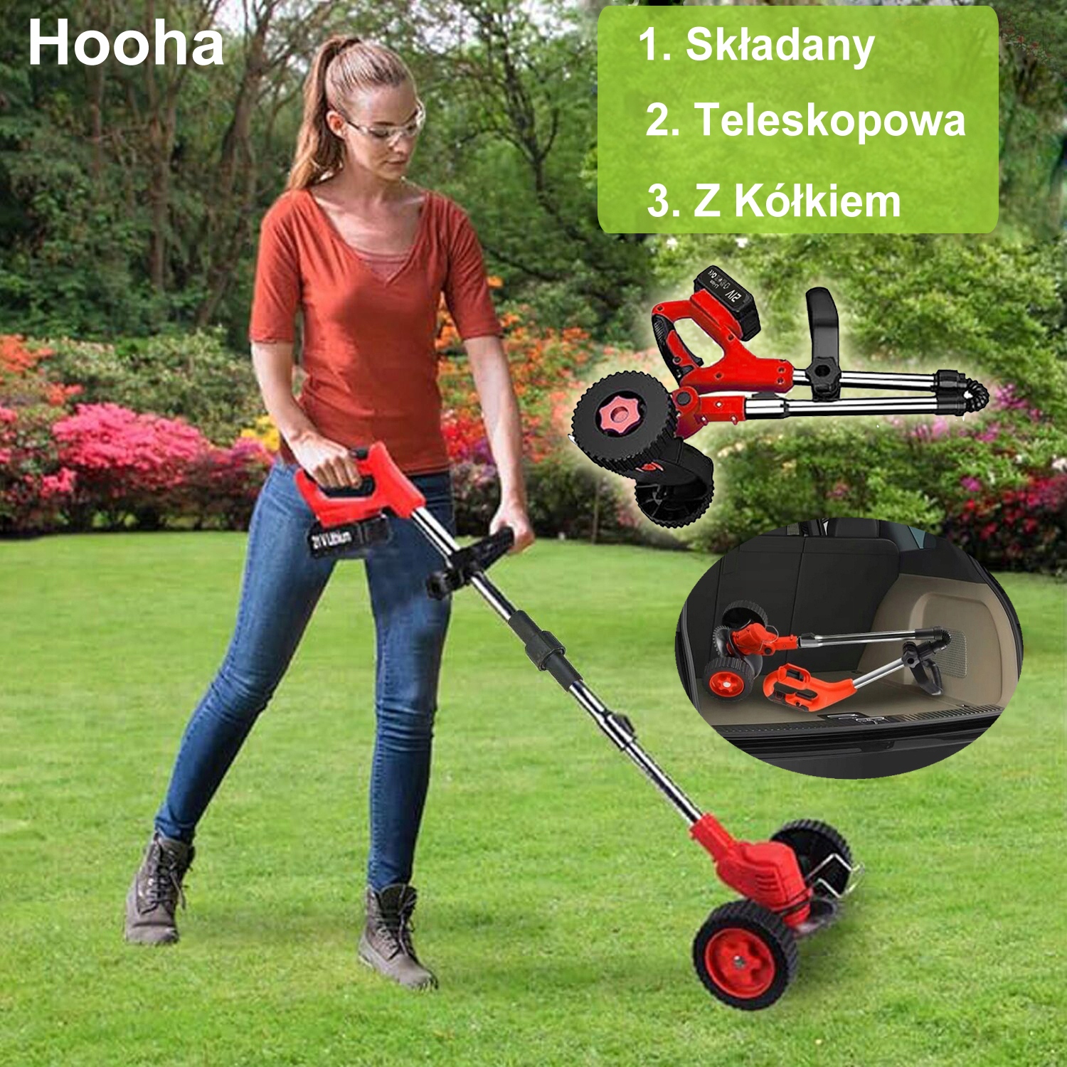 PODKASZARKA AKUMULATOROWA OGRODOWA SKŁADANY DO TRAWY Z ZYLKI NOZE & KÓŁKIEM