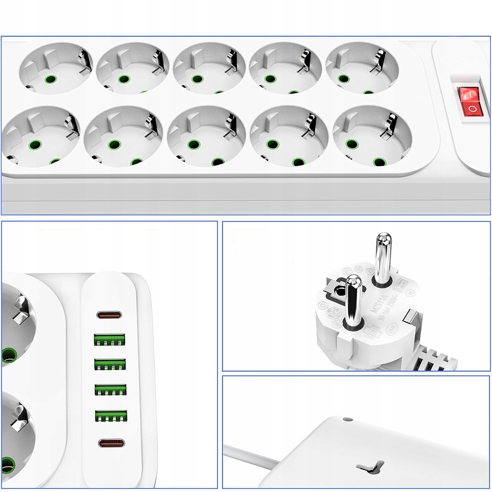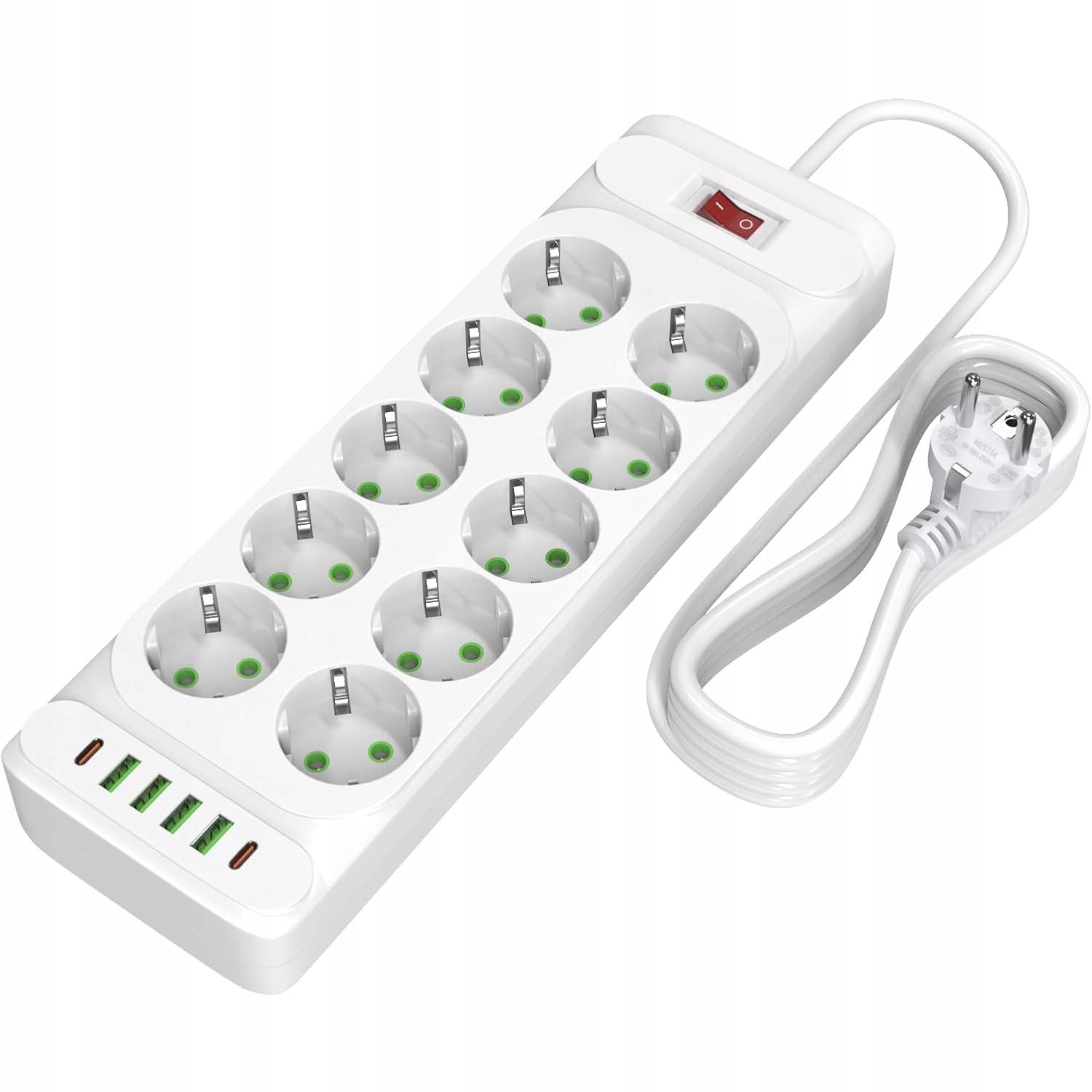 ⚡-С 10 розетками, 4 портами USB A, 2 портами типа C он идеально подходит для зарядки телефонов, планшетов, компьютеров и других устройств.