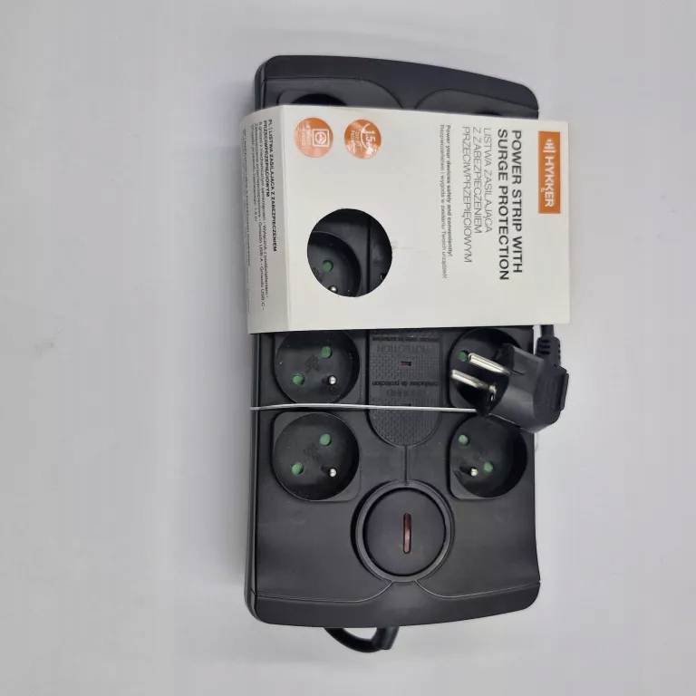 РАЗЪЕМ С ЗАЩИТОЙ ПЕРЕНАПРЯЖЕНИЯ 8 РОЗЕТОК HYKKER