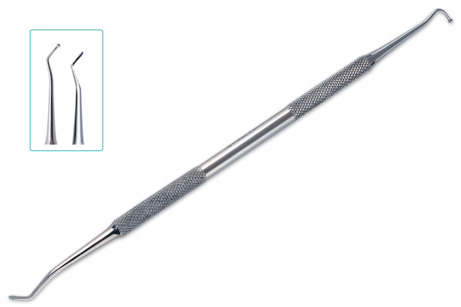 Зонд изготовлен из хирургической нержавеющей стали высочайшего качества. Этот материал устойчив к коррозии и обеспечивает долгую эксплуатацию инструмента. Он обладает противоаллергическими свойствами. Экскаватор можно автоклавировать и дезинфицировать. Он имеет два рабочих конца и рукоятку соответствующего профиля и с канавками, что обеспечивает комфорт и точность работы.