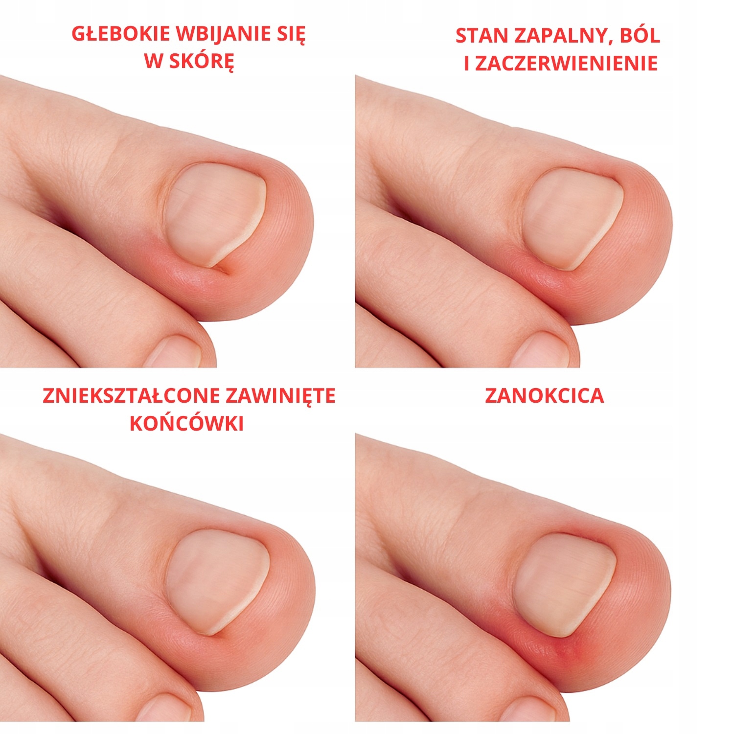 ✅ Воспаление - Ногти глубоко застряли в коже, вызывая боль и болезнь,