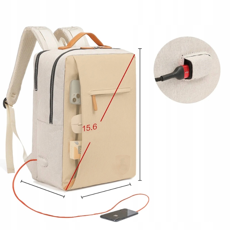 рюкзак рюкзак ручной багаж Wizzair Ryanair для салона с сумкой для ноутбука USB 15,6 крем h1>