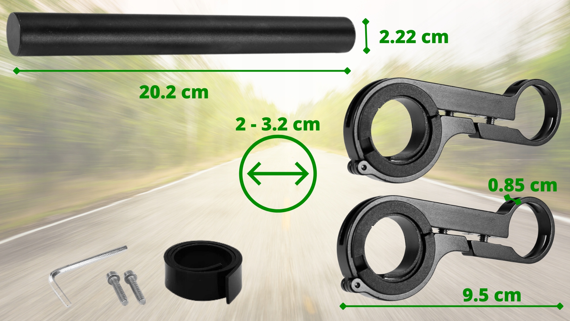 Размер держателя» 20,2x2,22 см | Как установить ручку - для рулей диаметром от 2 см до 3,2 см | Применение - универсальное удлинение руля велосипеда, самоката, мотоцикла
