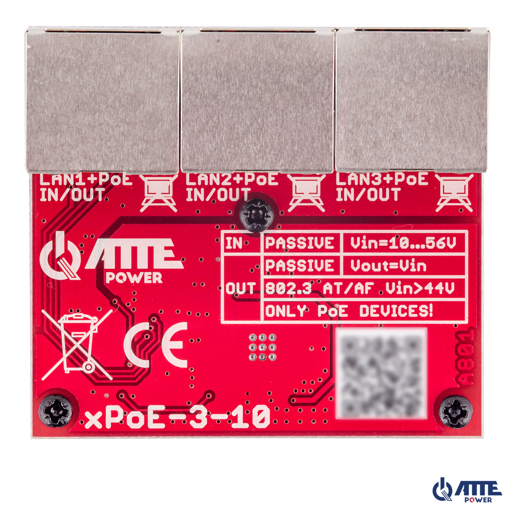 Версия xPoE-3-10 может питаться ТОЛЬКО от ПАССИВНОГО коммутатора или адаптера PoE и всех устройств ATTE Power ❗❗❗ Если у вас есть коммутатор PoE, работающий в Стандарт 802.3af/at, используйте версию xPoE-3-11-A.