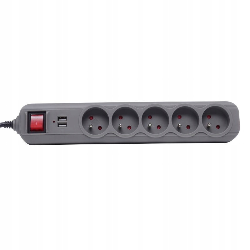 Удлинитель с двумя розетками USB и пятью традиционными розетками на 230 В, а также кабелем длиной 3 метра. Он позволяет заряжать устройства с питанием от USB-порта, например телефоны, непосредственно от удлинителя без необходимости подключения зарядного устройства или использования розеток на 230 В. Эстетичный и прочный корпус изготовлен из безопасных, негорючих материалов. Лента имеет медную электропроводку и выключатель, розетки оснащены защитой от детей.
