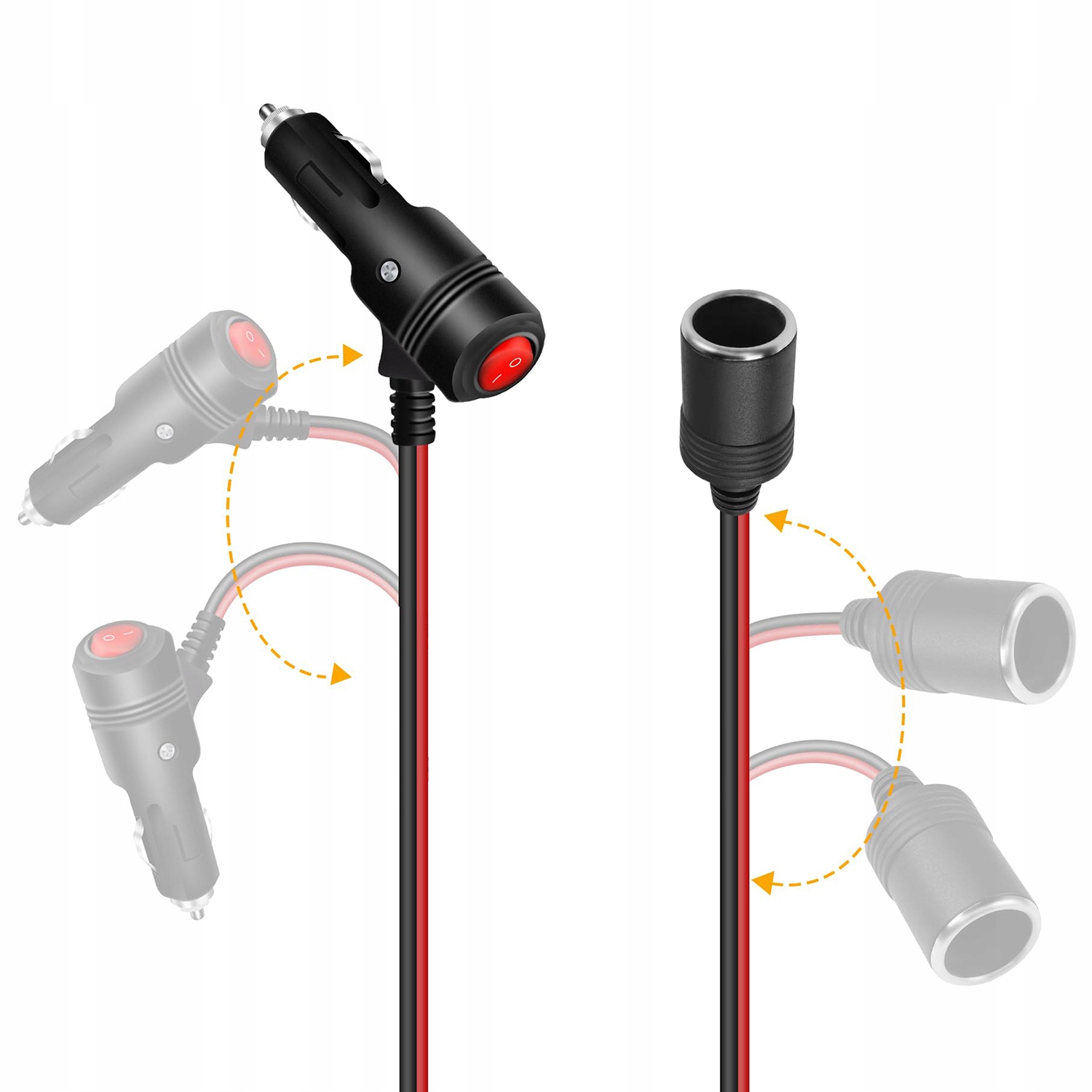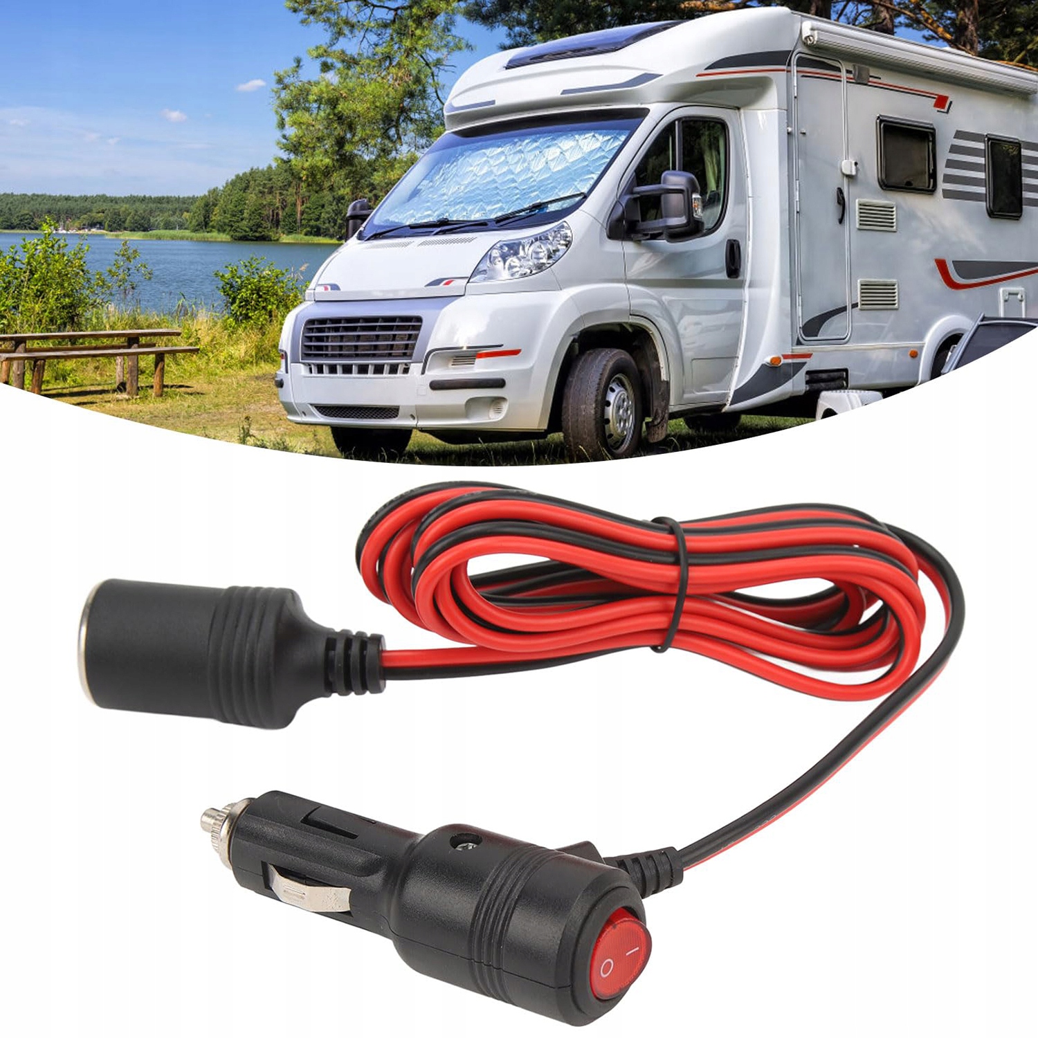 Удлинительный кабель для прикуривателя, 2 м, с выключателем, розетка на 15 А, 16AWG