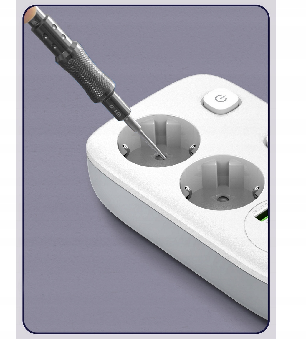 Надежный удлинитель, благодаря которому мы можем одновременно подключить 6 устройств. Два устройства подключаем к стандартным вилкам питания, еще четыре — к USB-портам, имеющим, среди прочего, Стандарт быстрой зарядки QC3.0 и PD20W!
