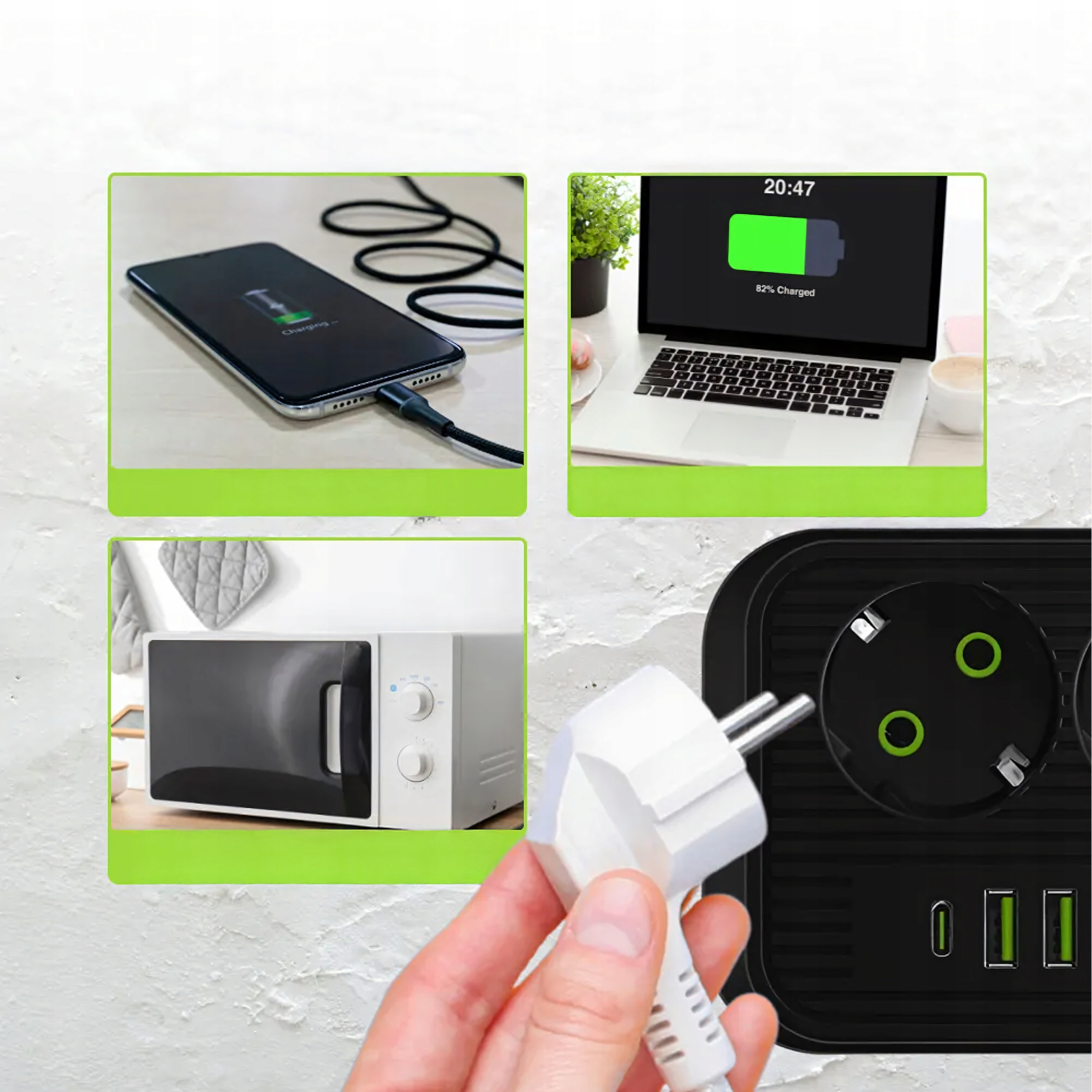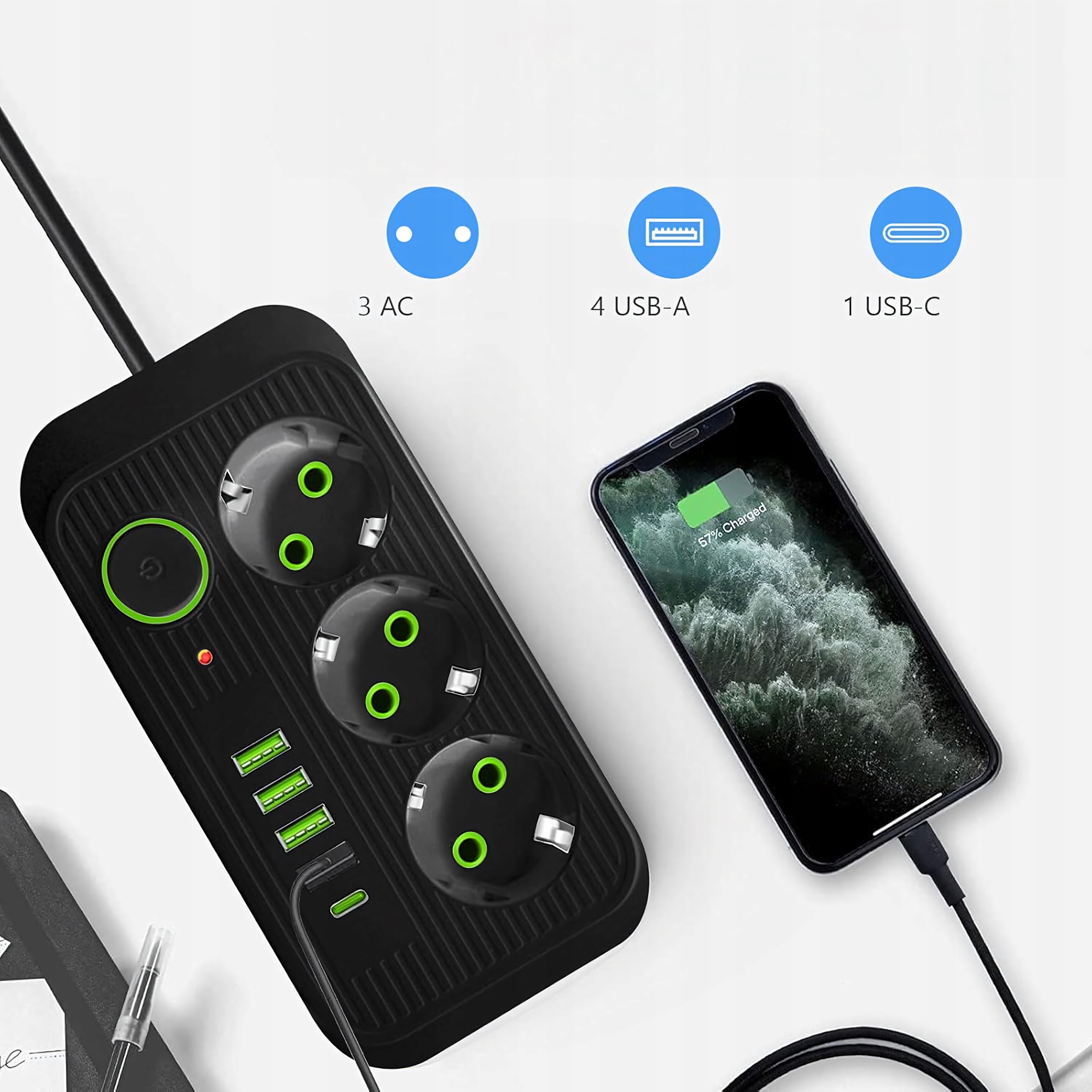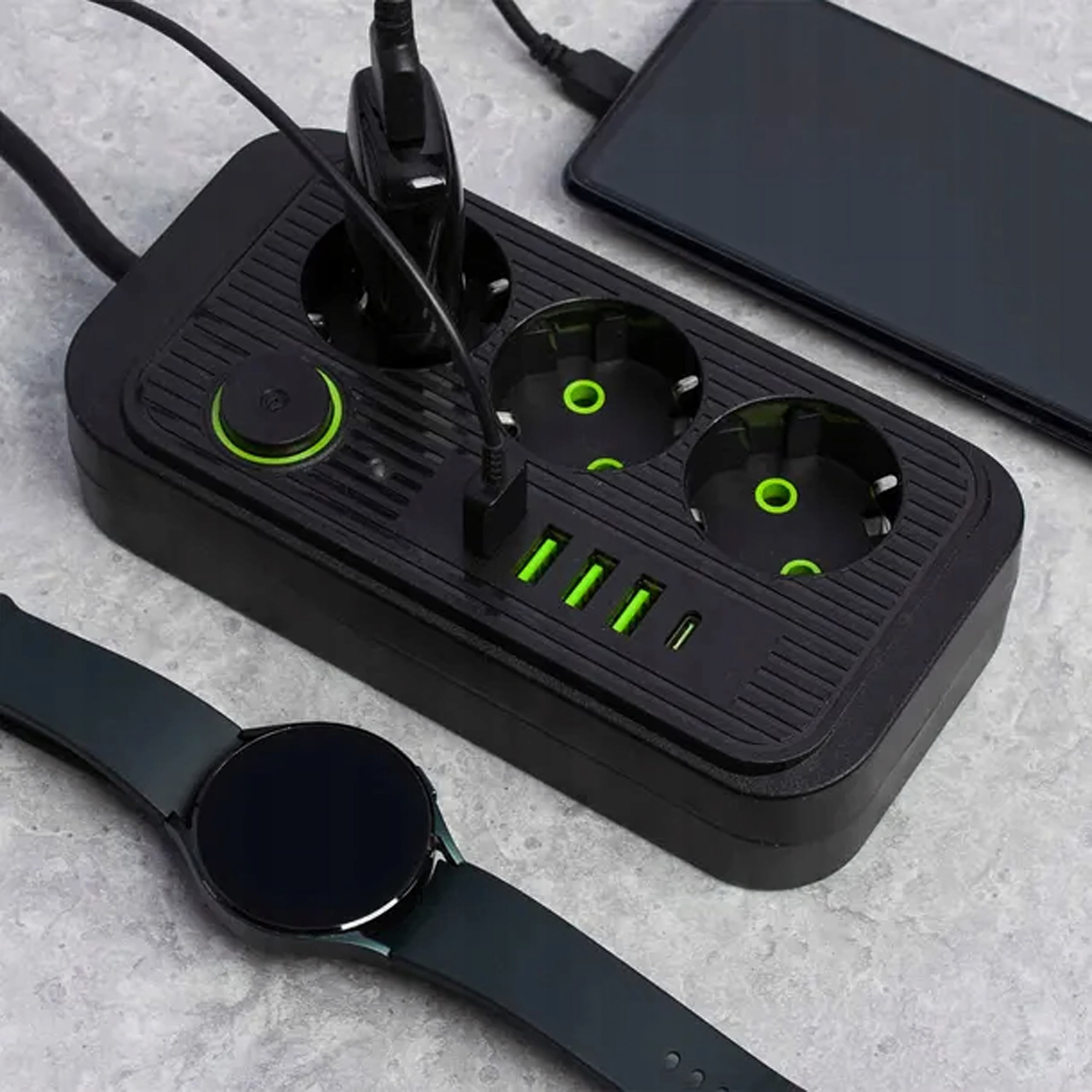 ⚡ Удлинитель длиной 2 м с 3 розетками и 5 портами USB (включая USB-C) — практичное и безопасное решение для дома, офиса и путешествий. Вы экономите место, время и силы! 📱💻