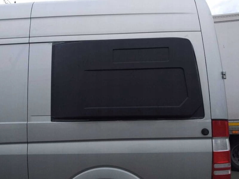Удлинитель кузова из прочного АБС-пластика, предназначенный для кемперов Mercedes Sprinter. В комплект входит комплект из 2 штук, для правой и левой стороны. Удлинители используются для увеличения ширины автомобиля примерно на 19 см, чтобы использовать более длинное и удобное спальное место в спальной зоне кемпера. В пристройках установлены окна (двухслойные) дымчато-серого цвета. Можно заказать пристройки с другим цветом окон (бесцветные, дымчато-коричневые) или без окон (цена тогда на 100 злотых брутто ниже). Поставляемый товар не имеет лакировки. Его необходимо подготовить и покрасить в цвет кузова.