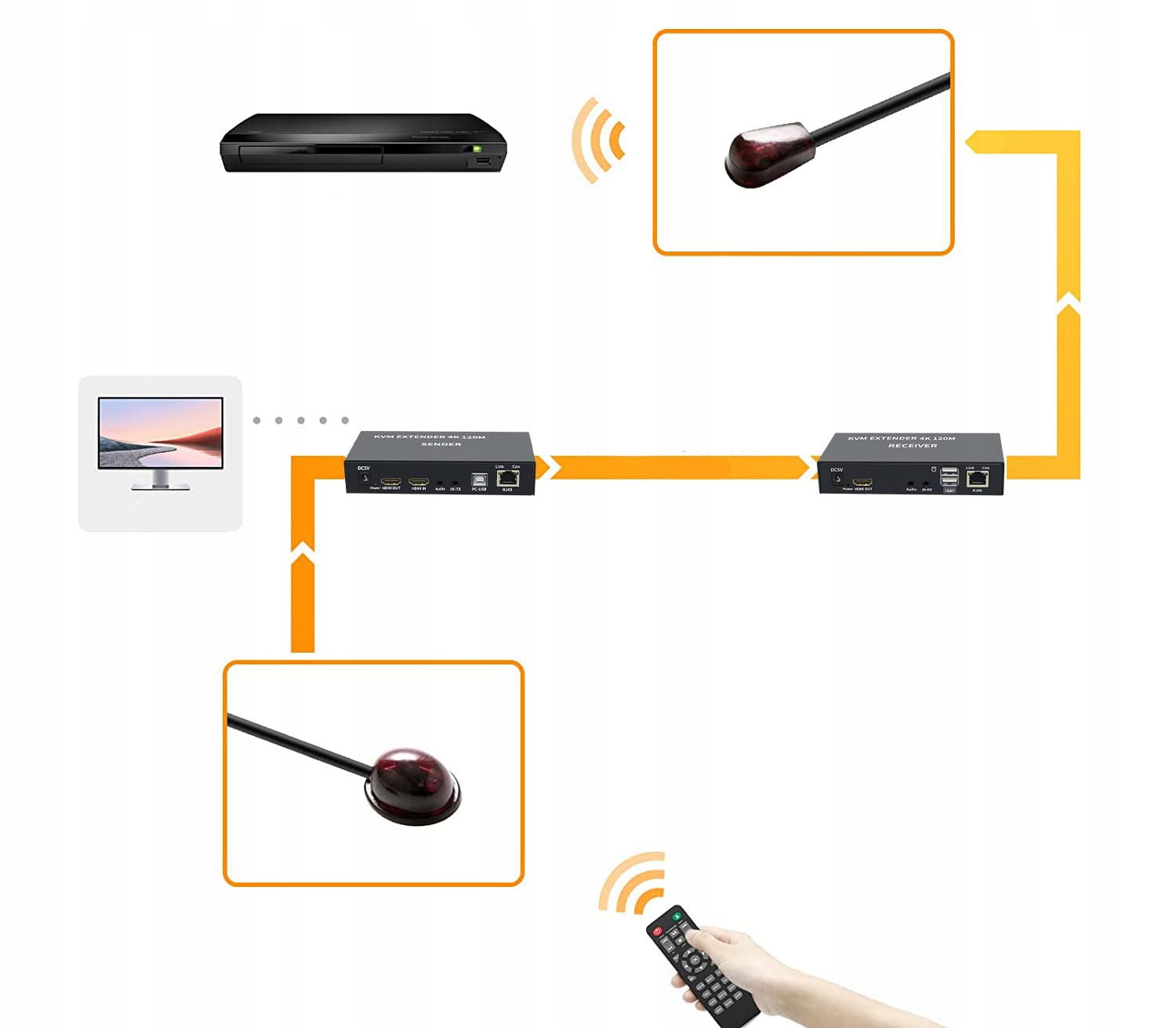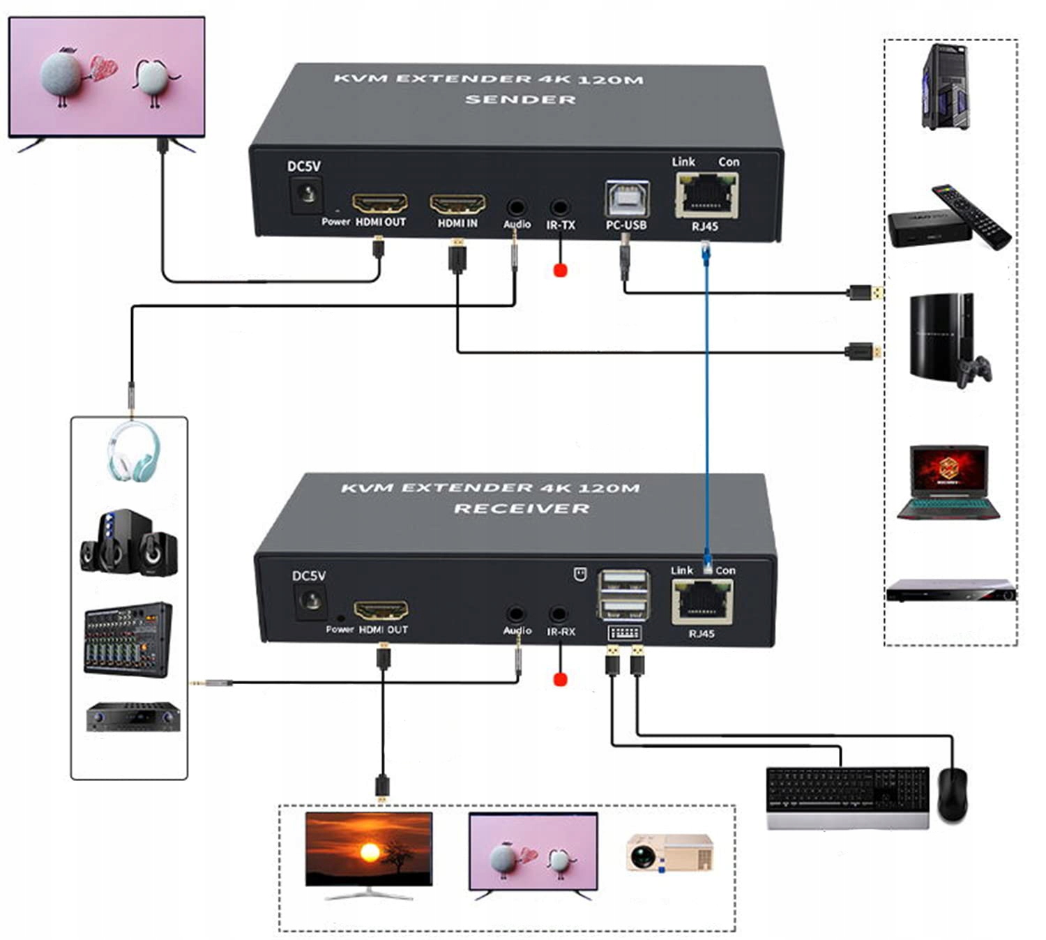 Kvm xykjobc extender, 4K, 120m удлинительного шнура